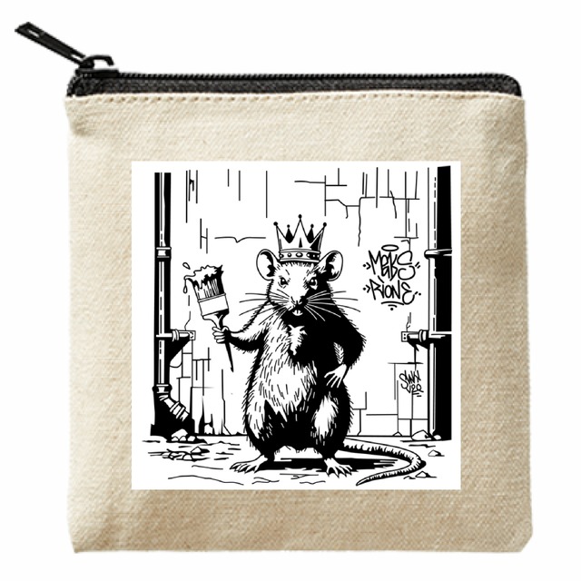 【バンクシー風】王冠ネズミ キャンバスポーチ - ストリートアート/小物入れ/ラット