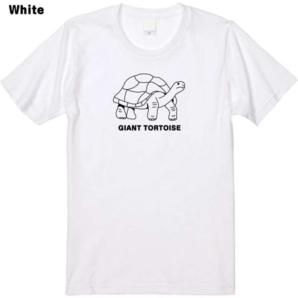 GIANT TORTOISE(ゾウガメ)のイラストがプリントされたシンプルで可愛いTシャツです。まるで心が和むような可愛らしいロゴは、動物好きや爬虫類に興味がある方の日常のカジュアルスタイルにぴったりなアクセントを加えます。