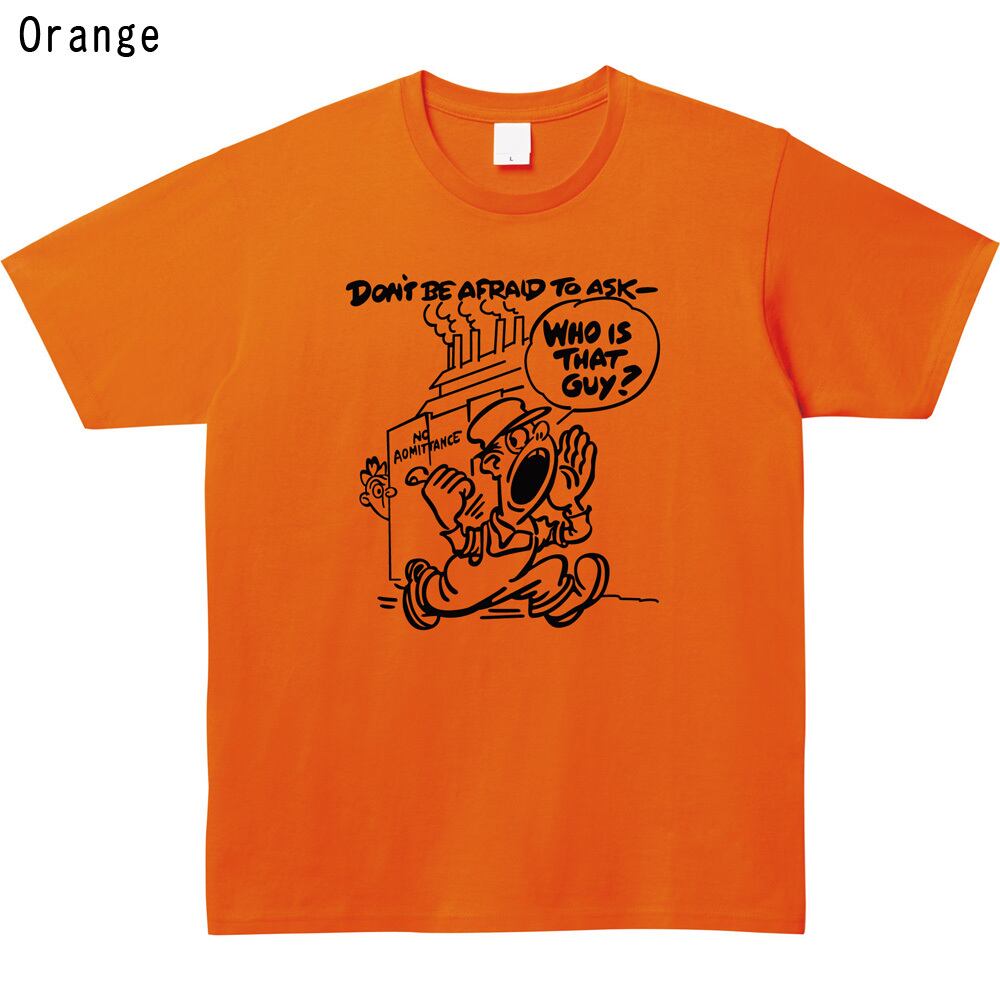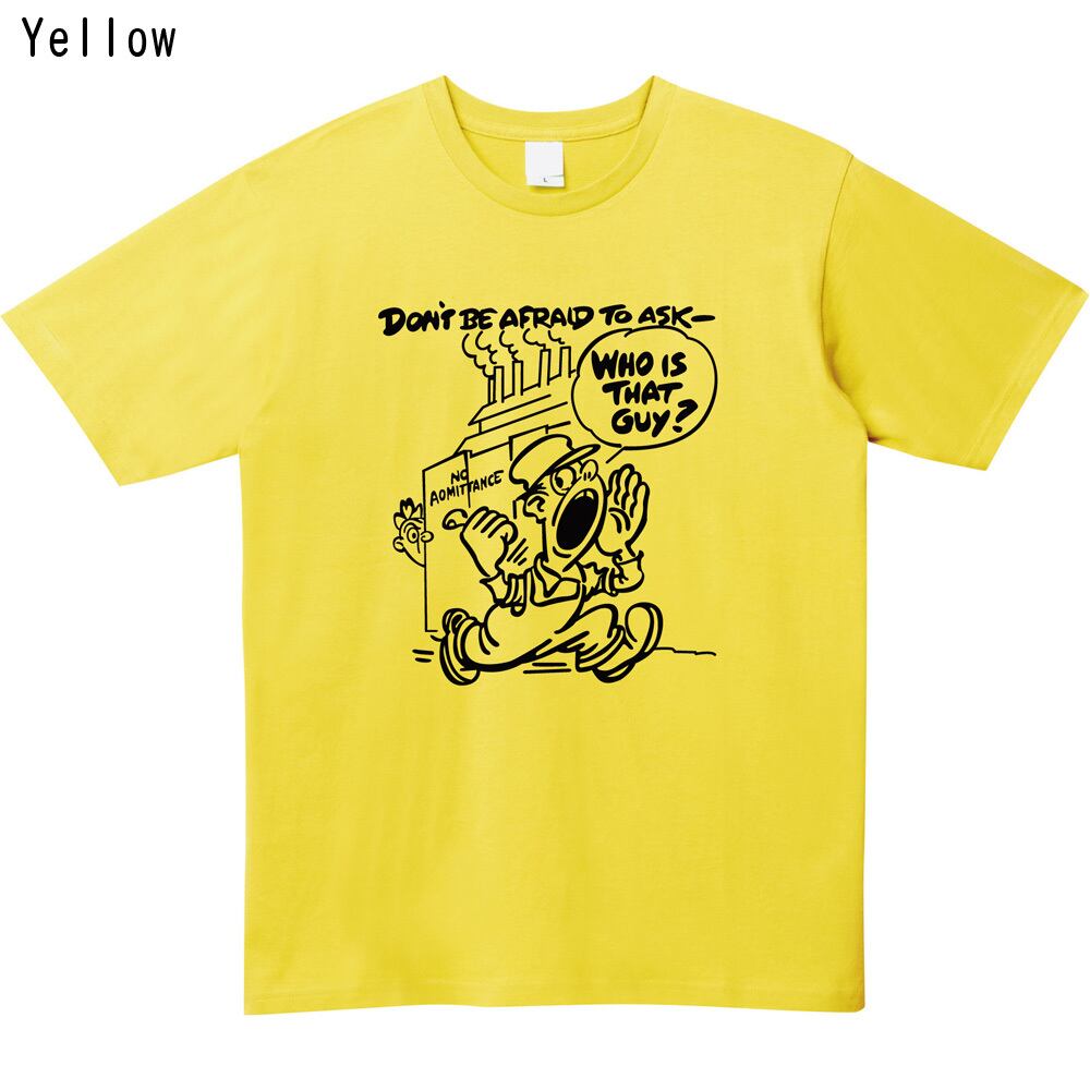 「Don't be afraid To Ask」(聞くことを恐れるな)というポジティブなメッセージと、「Who is that guy?」(あの人誰?)というクスッと笑えるセリフが特徴的なデザインです。