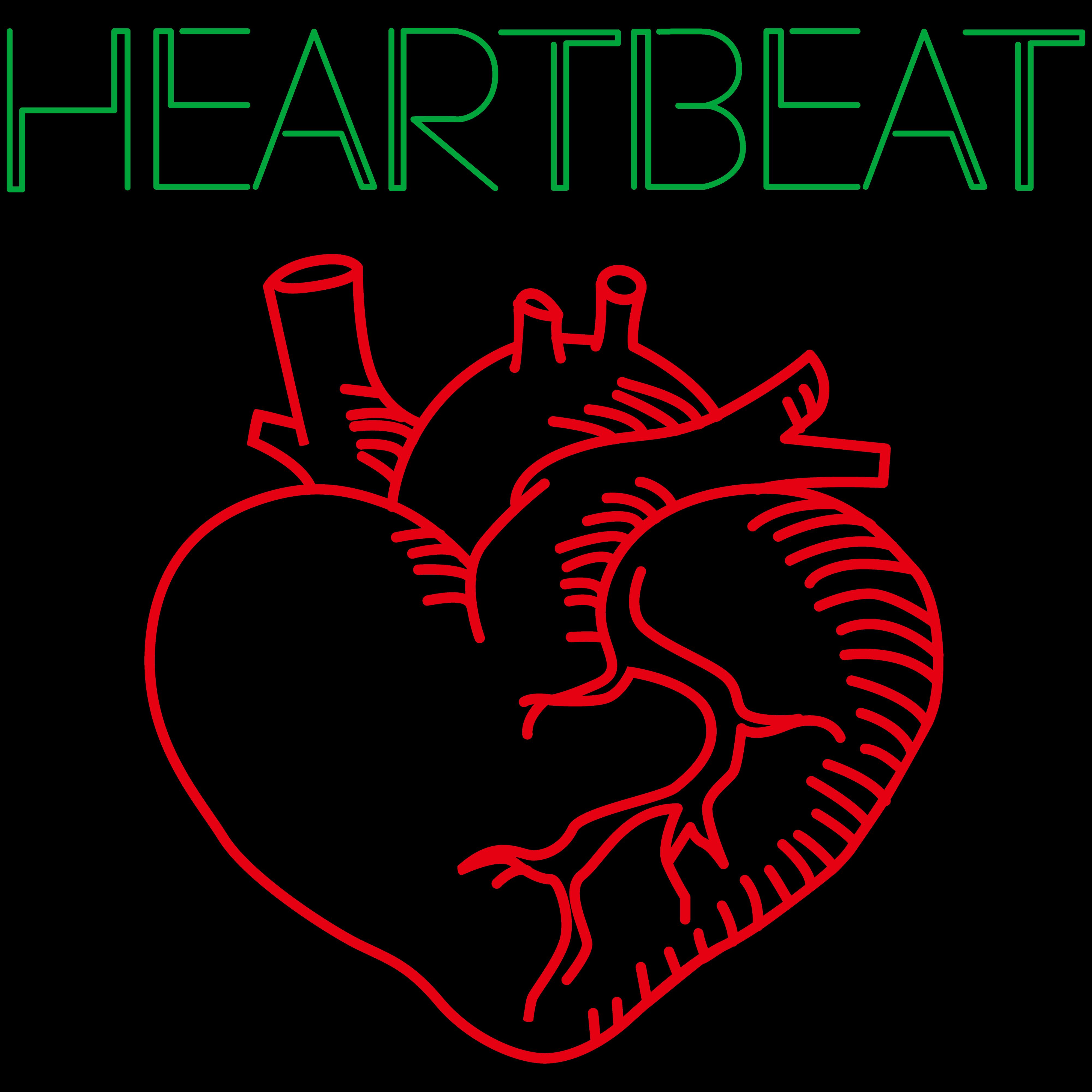 HEARTBEATロゴポーチは、赤い心臓のアウトラインと緑色の「HEARTBEAT」の文字が印象的なデザインで、機能的でありながら個性的なアイテムです。