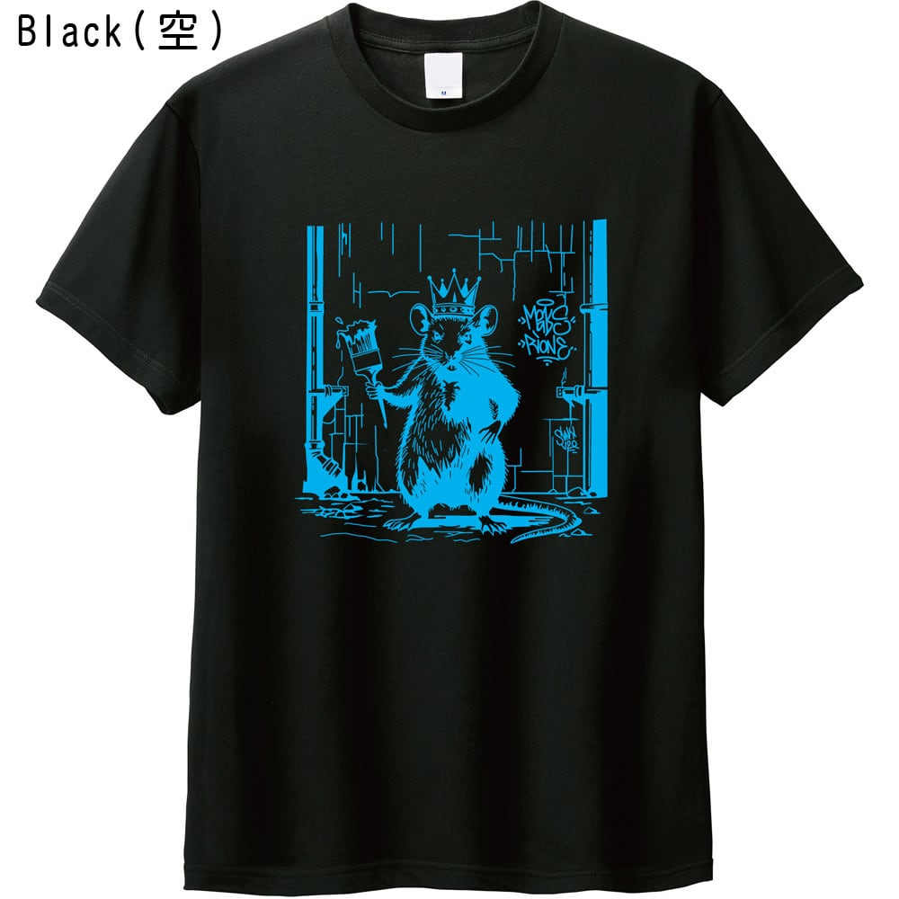 王冠をかぶり、堂々とペンキブラシを構えるネズミの姿は、まさにGraffiti King(グラフィティの王様)。