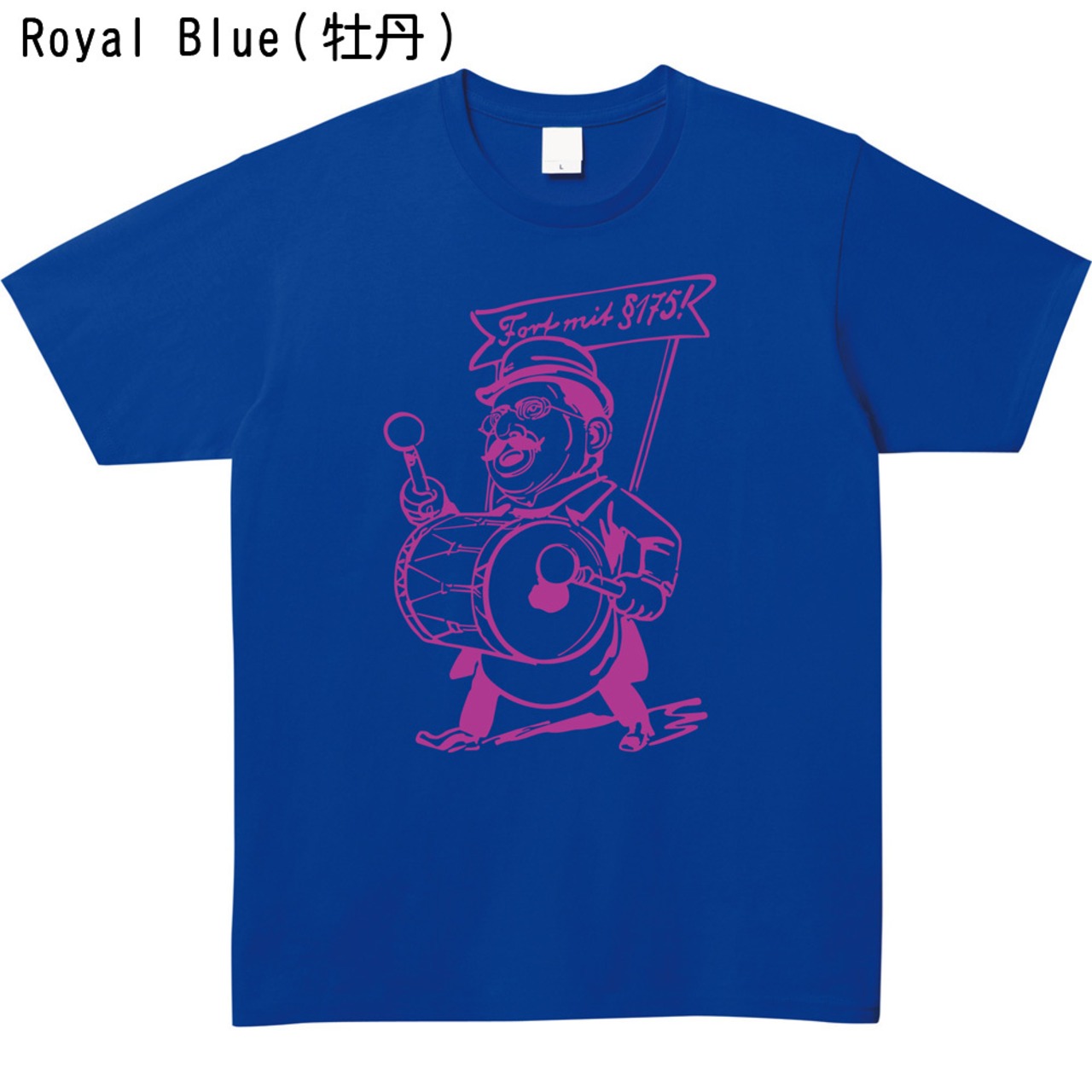 デザインの中心となるのは、太鼓を叩きながら力強く行進する、愛嬌のある人物のイラスト。彼が掲げる旗には「Fort mit §175!」という、ドイツ語のスローガンが描かれています。