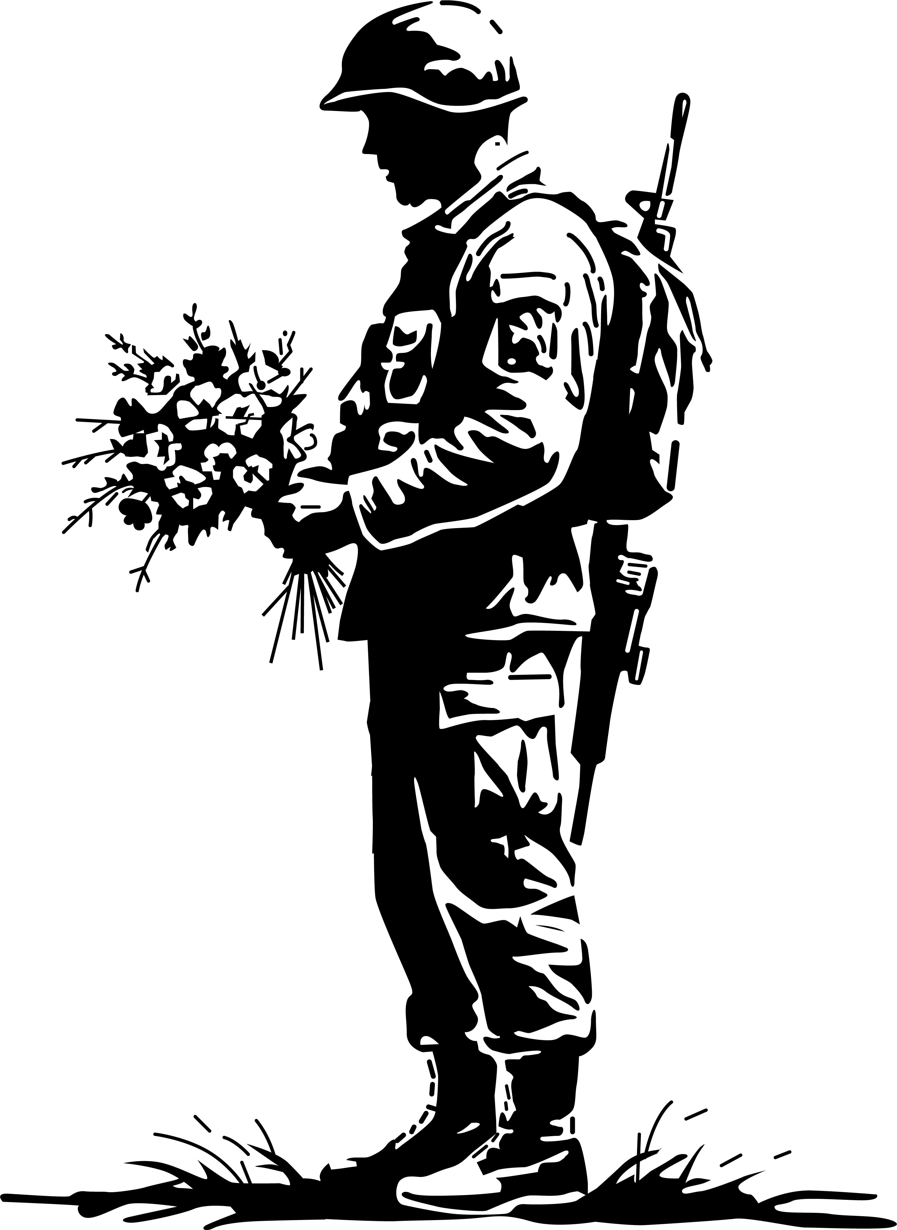 戦争の象徴である軍人と、平和の象徴である花束。その力強いコントラストを描いたバンクシ
