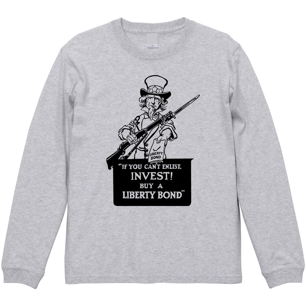 この長袖Tシャツのグラフィックは、第一次世界大戦中にアメリカ政府が戦費調達のために制作した本物のプロパガンダ・ポスターがモチーフです。