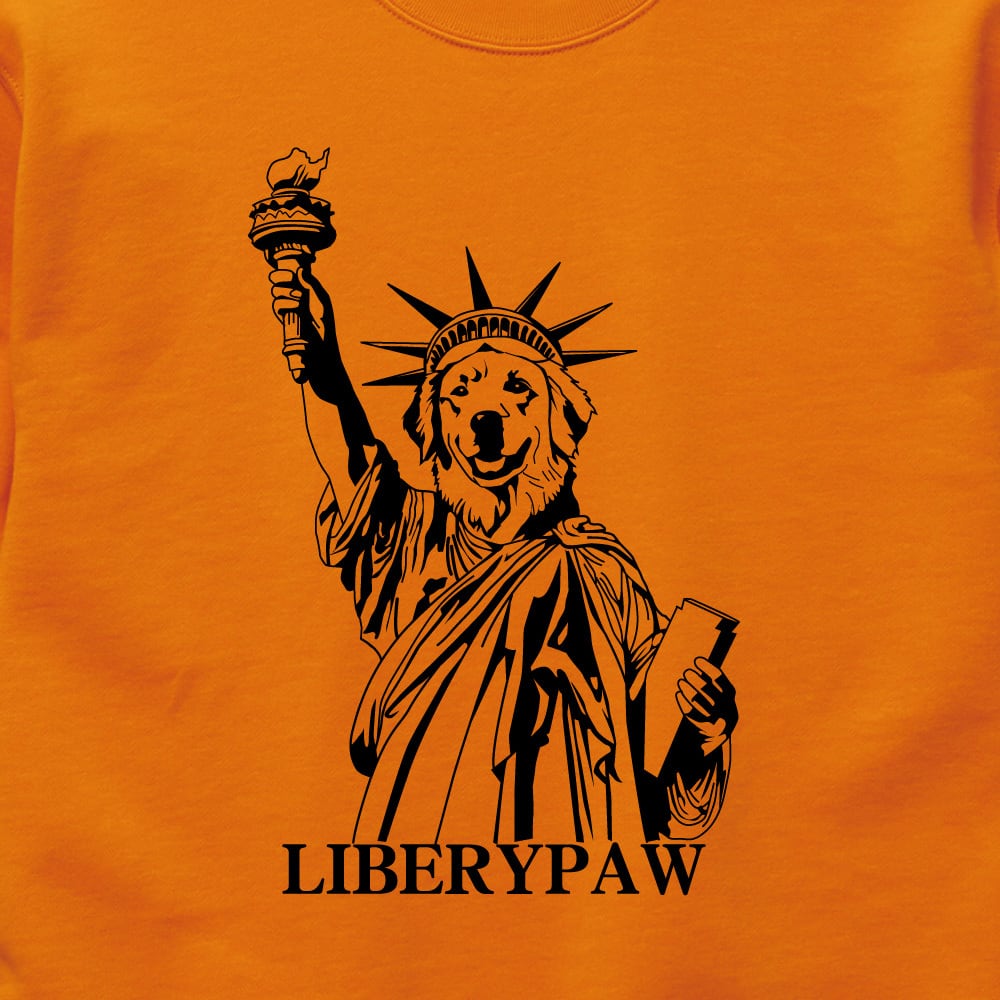 自由の女神とゴールデンレトリバーをミックスした、シュールで遊び心あふれるパロディスウェットです。