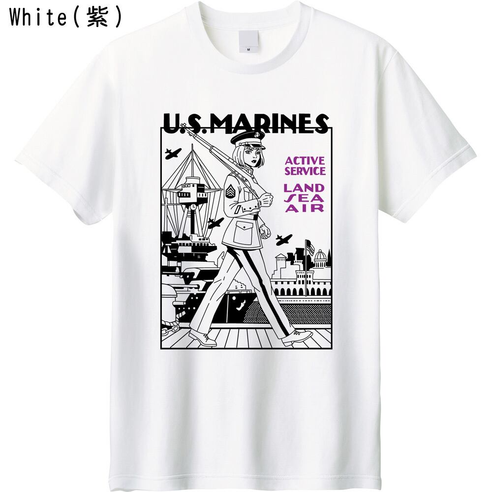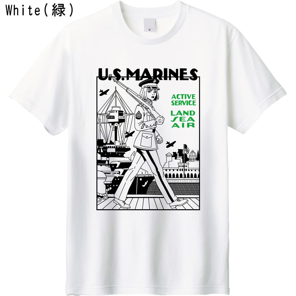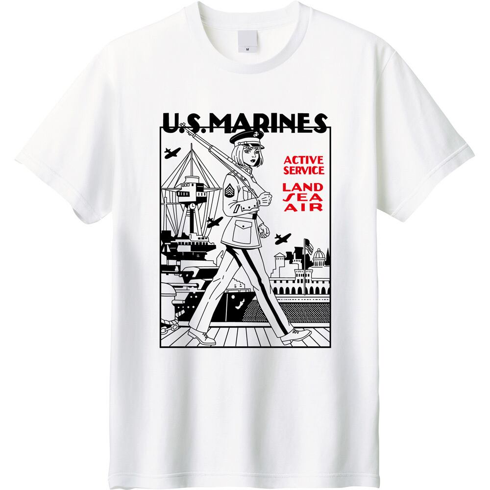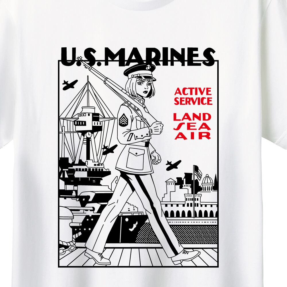 U.S.MARINES ミリタリー Tシャツ|米海兵隊 ガール イラスト レトロ アメカジ 全4色