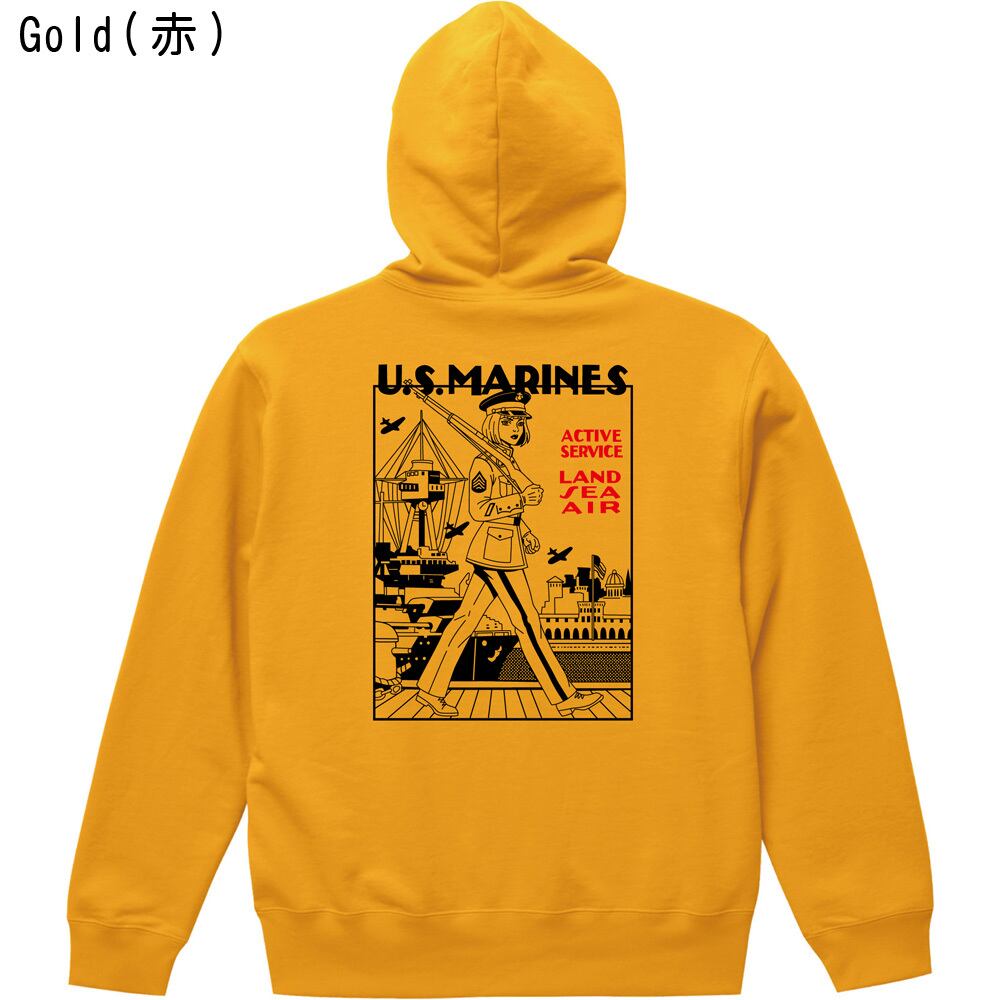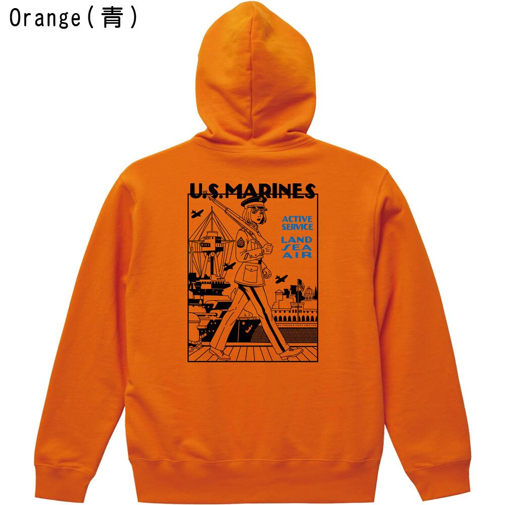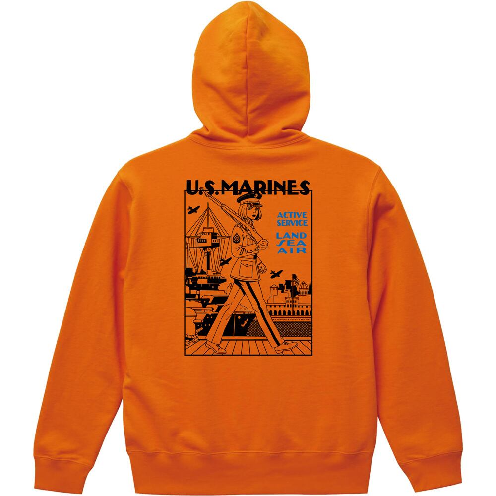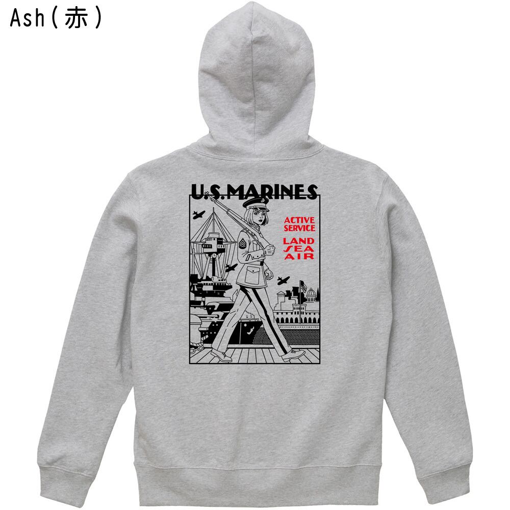 U.S.MARINES ミリタリー プルオーバーパーカー|米海兵隊 ガール イラスト レトロ アメカジ 全3色