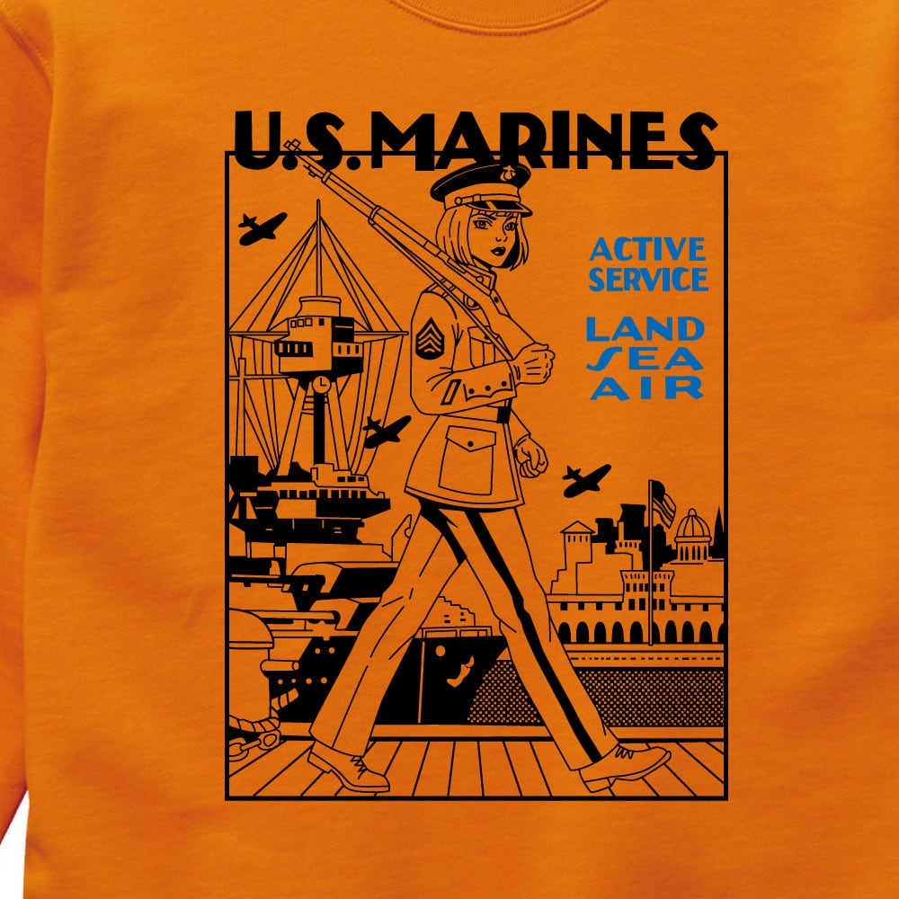 ■1940〜50年代を彷彿とさせるレトロデザイン 米海兵隊(U.S.MARINES)をモチーフにした、ヴィンテージ感溢れるガールイラストが目を引くオリジナルスウェットです。