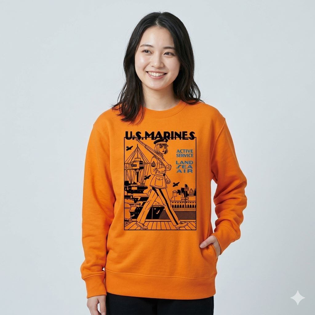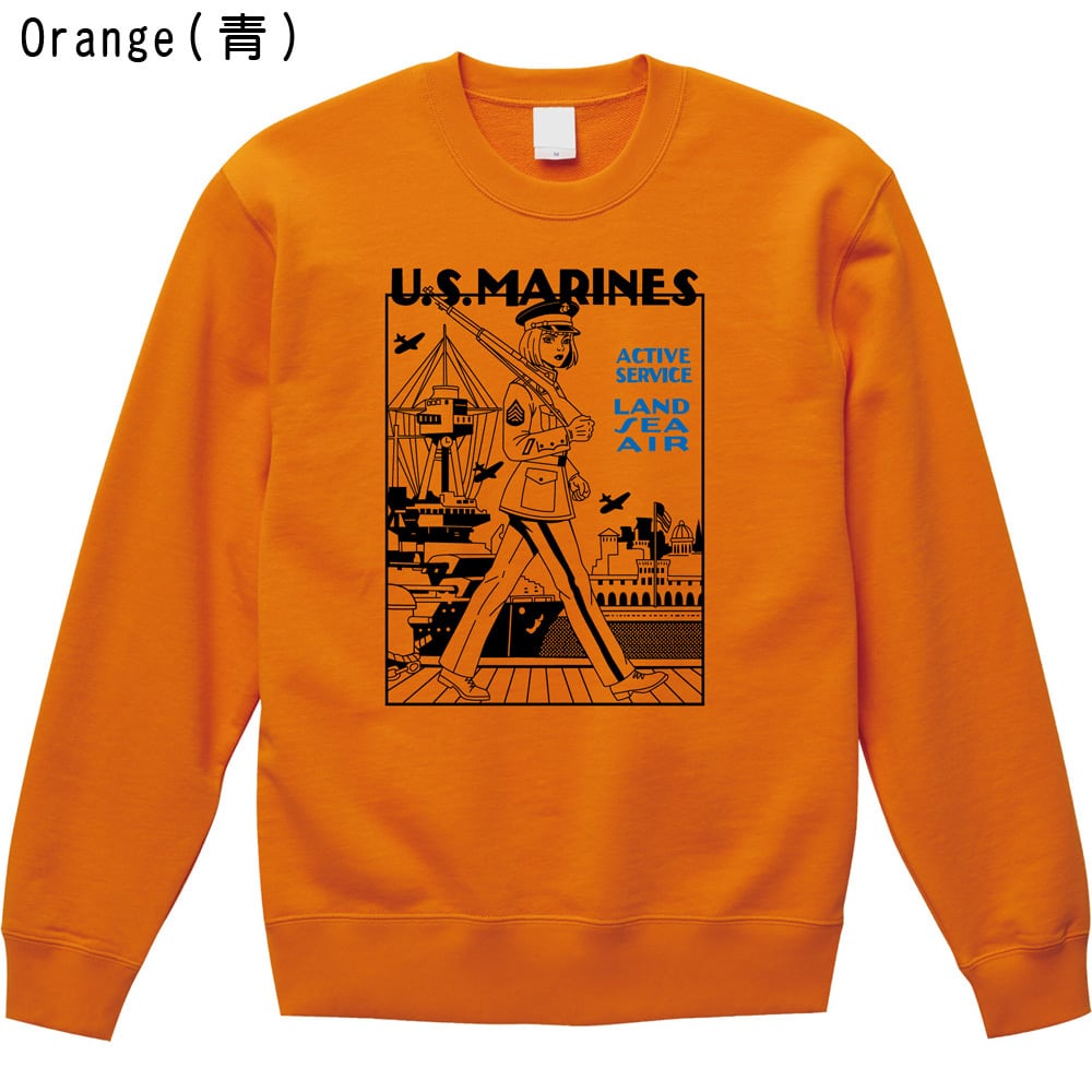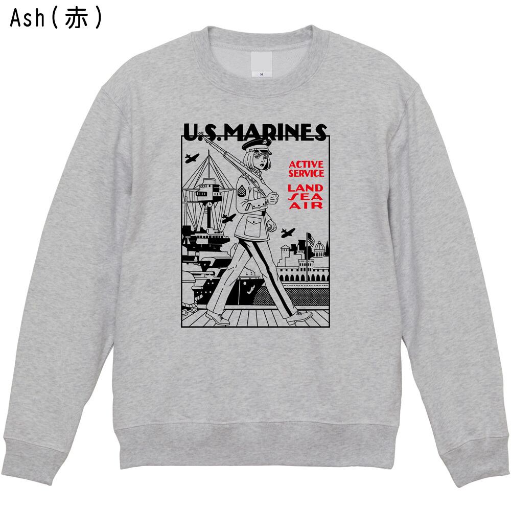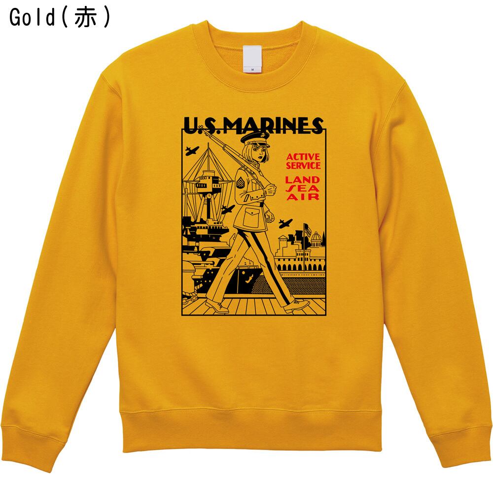 U.S.MARINES ミリタリー スウェット トレーナー|米海兵隊 ガール イラスト レトロ アメカジ 全3色