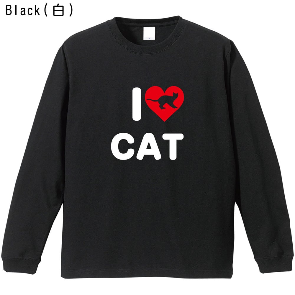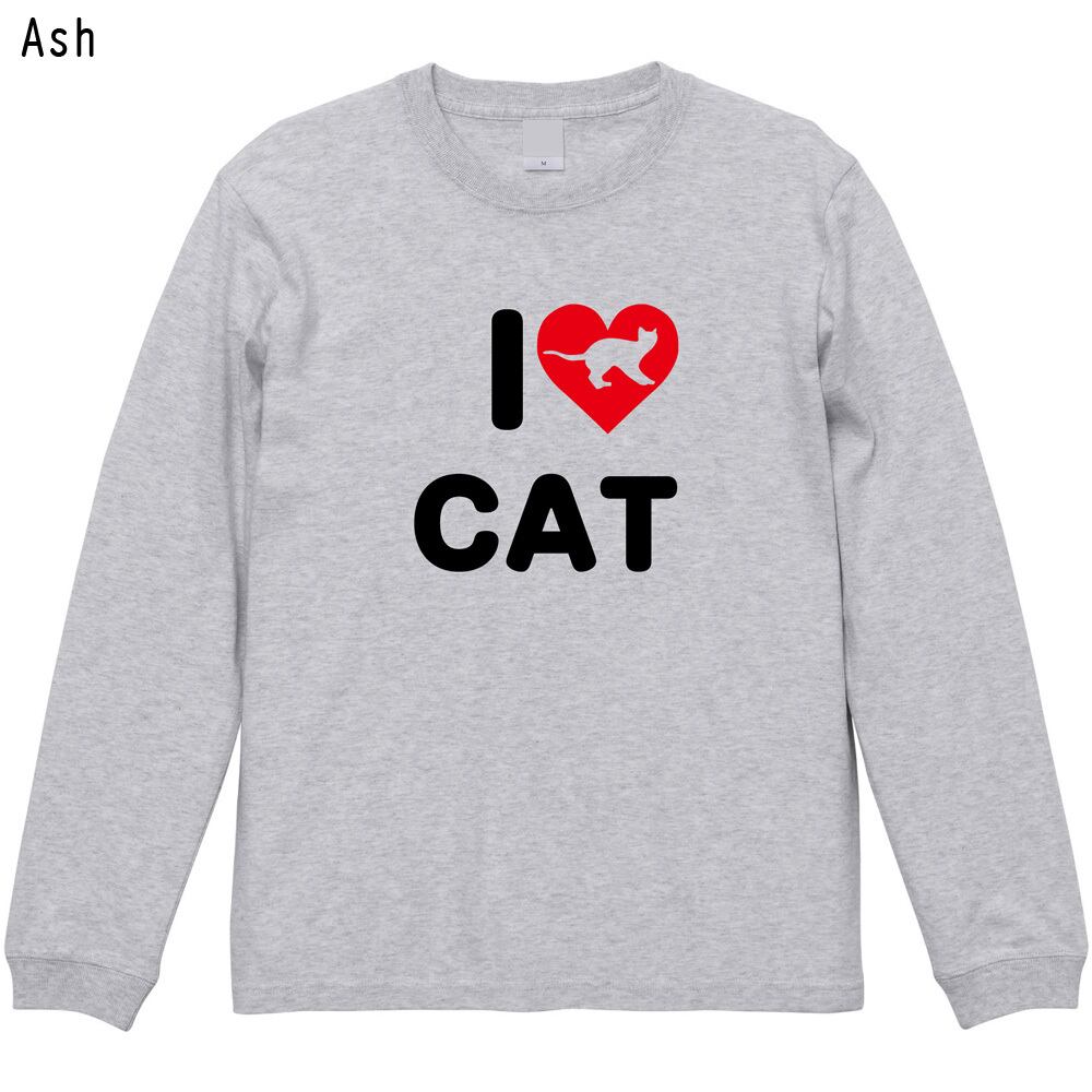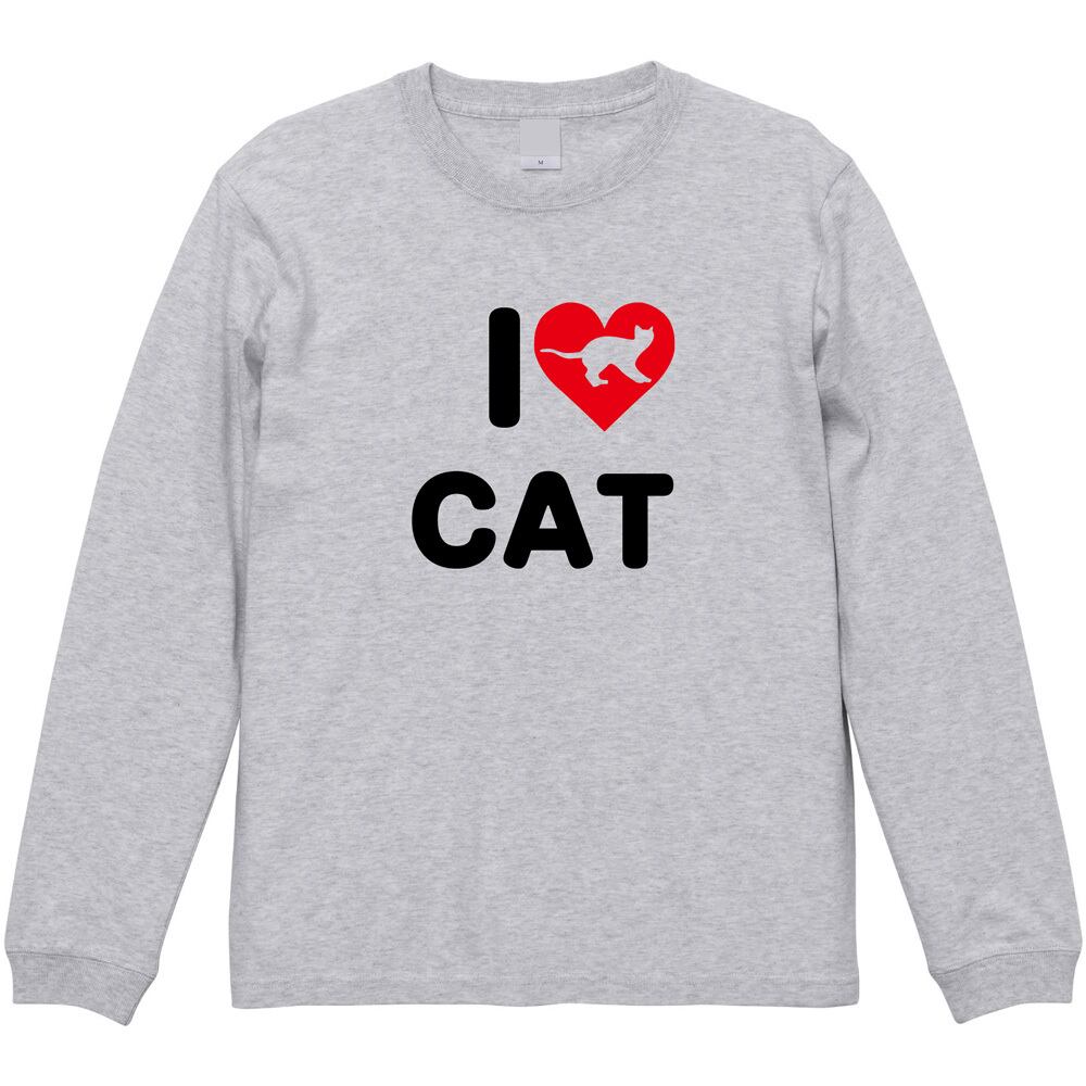 猫 長袖Tシャツ I LOVE CAT ハート ロゴ ロンT 全2色 猫 グッズ 雑貨 ねこ ネコ かわいい プレゼント