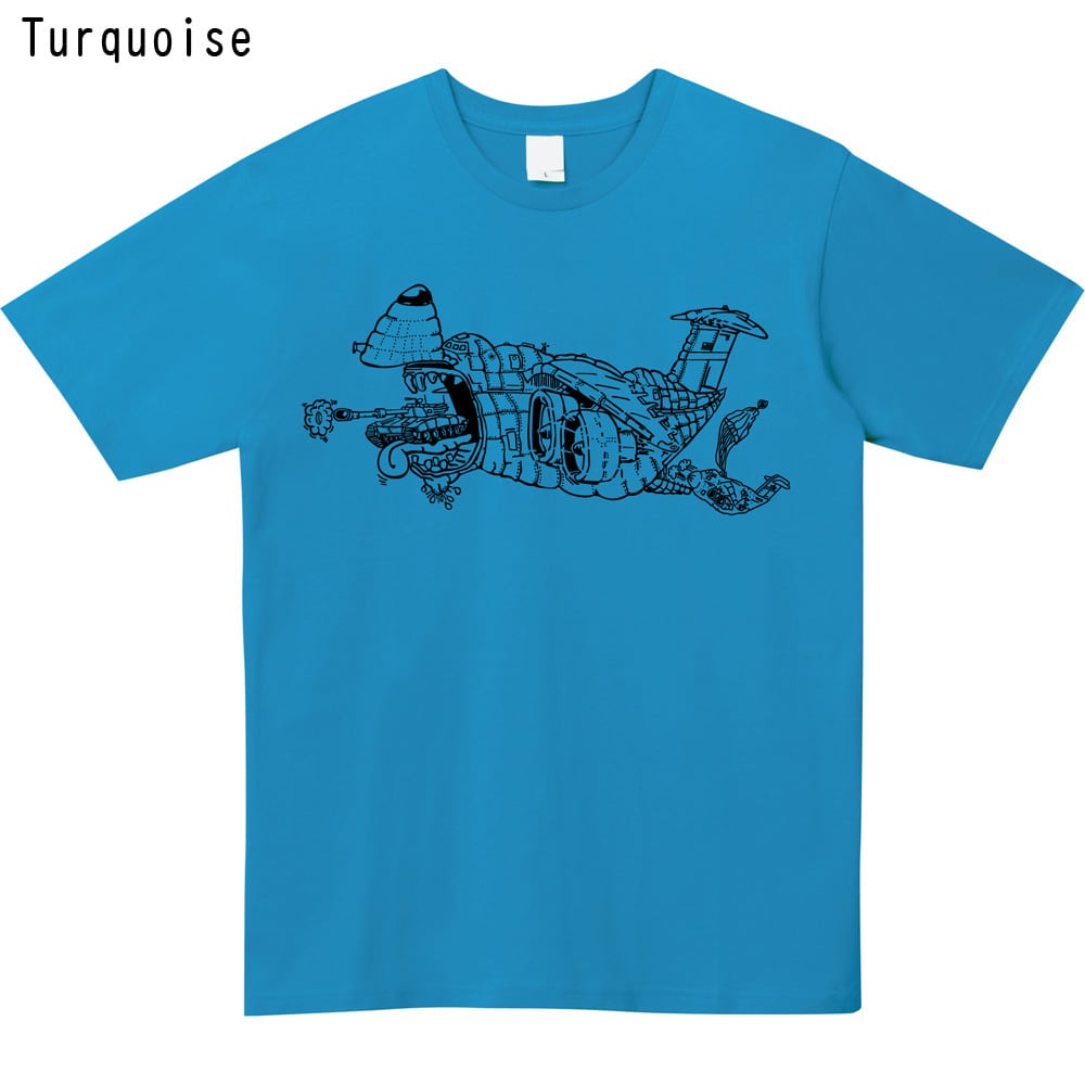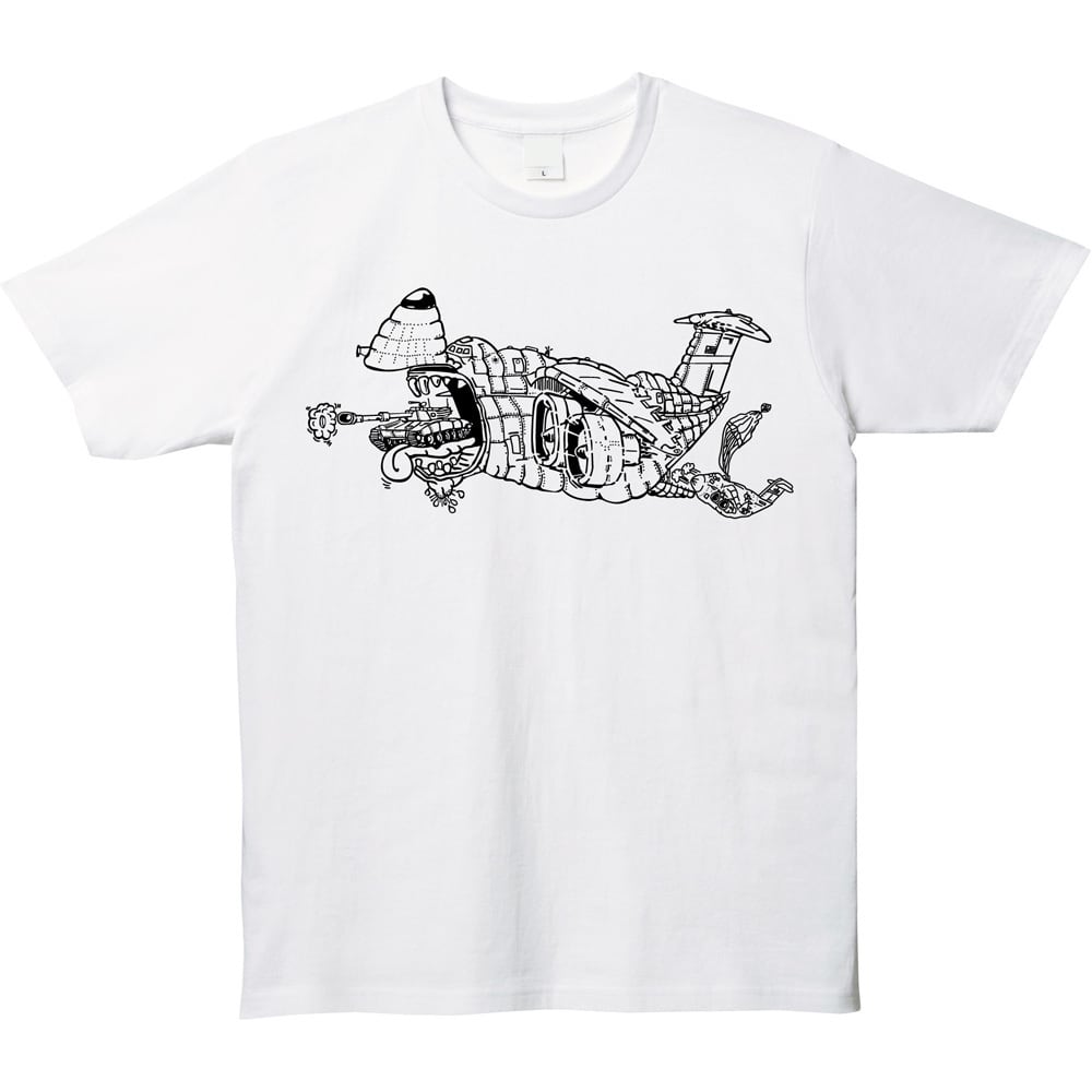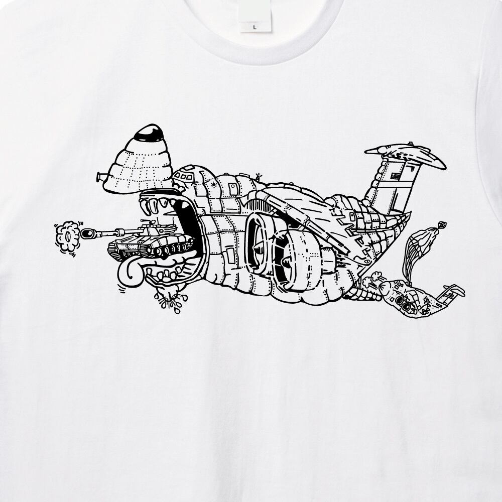 「何でも運ぶ」圧倒的な輸送力をブラックユーモアたっぷりに表現した、遊び心あふれる一着です。