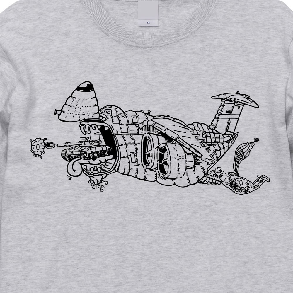 米空軍が誇る世界最大級の輸送機C-5 ギャラクシー。その巨大な機体をコミカルなモンスターに見立てた、実在の伝説的ノーズアートをロンTに落とし込みました。