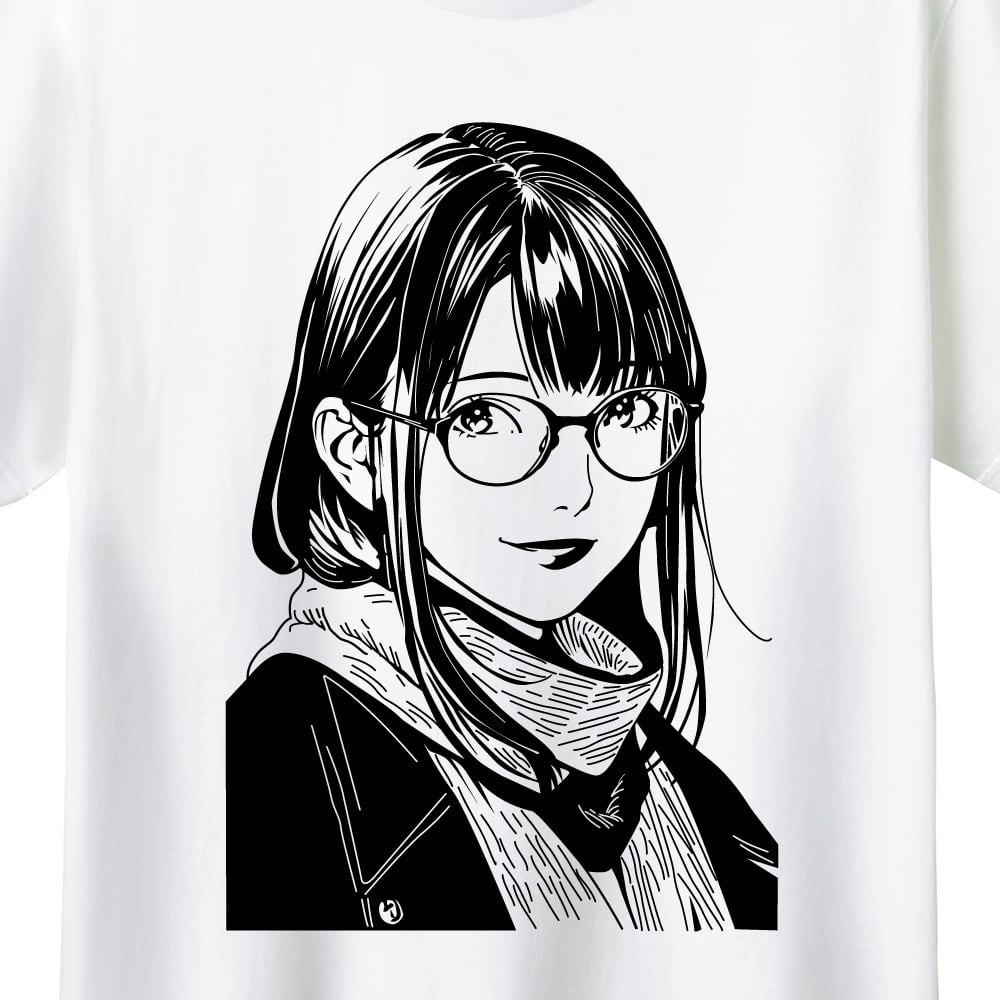 【全5色/XXL】アーバン・ラインアート シティガール プリントTシャツ|眼鏡女子 イラスト