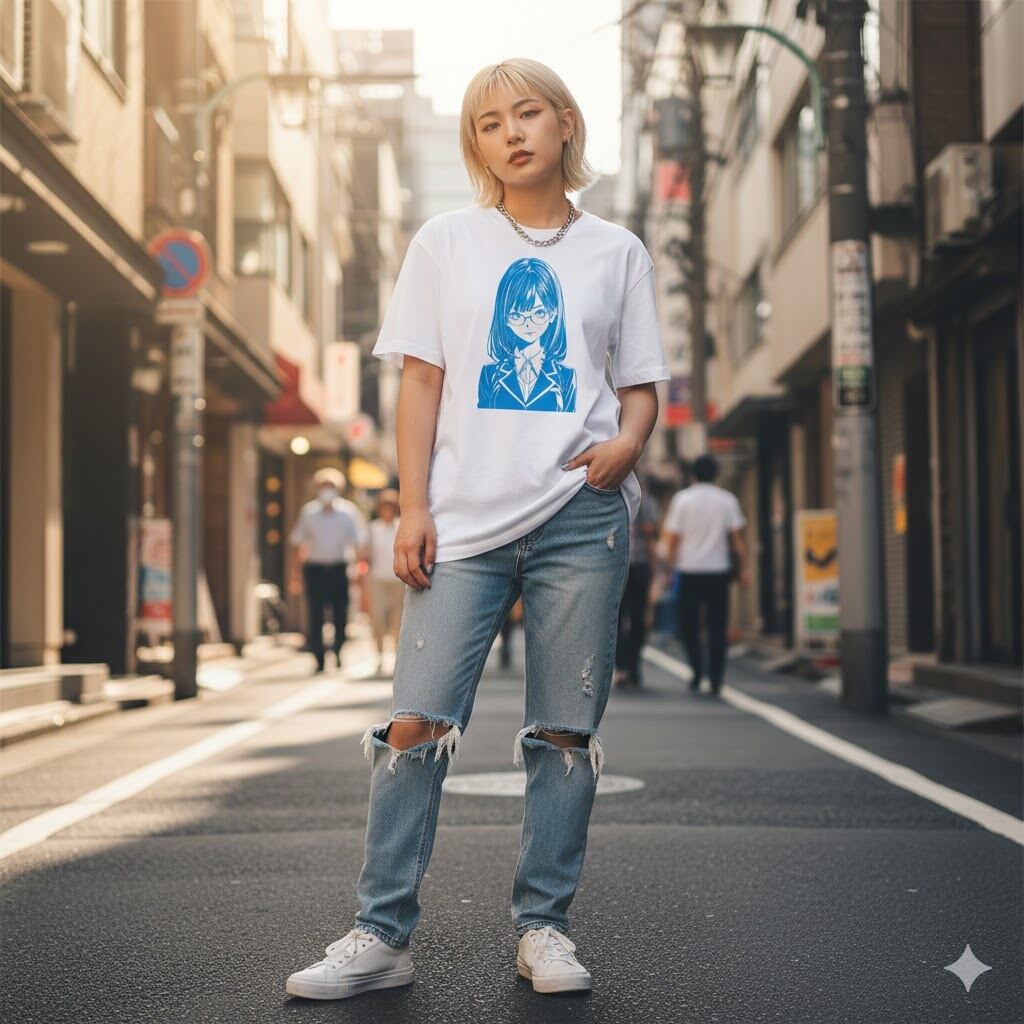 「放課後の笑顔に恋をする。エモさ溢れる、眼鏡女子高生Tシャツ。」