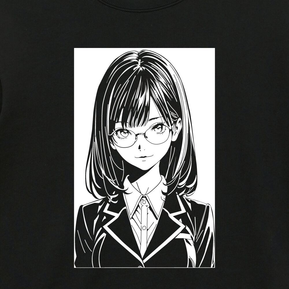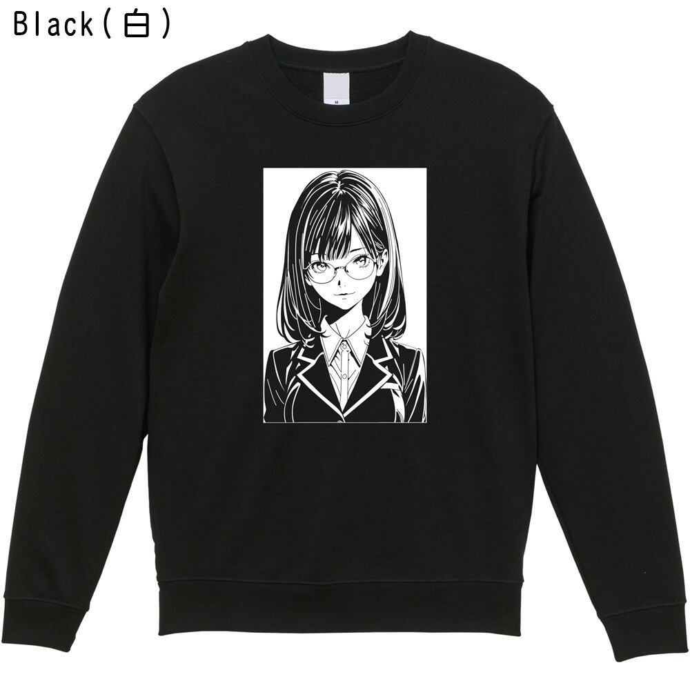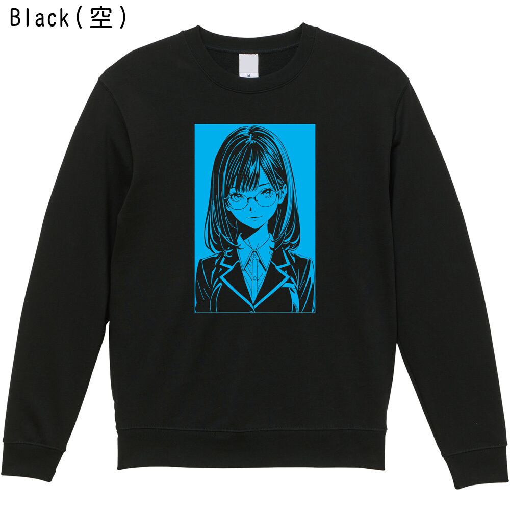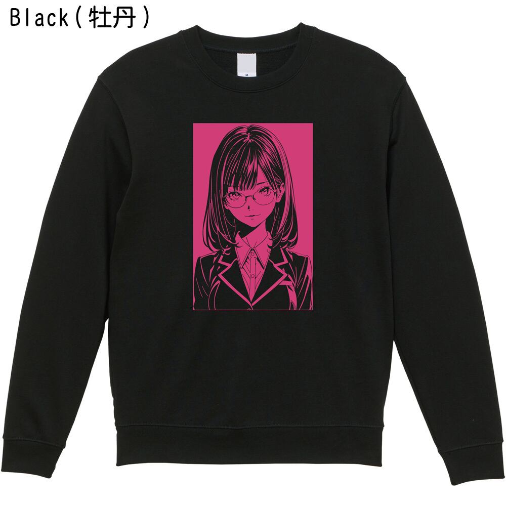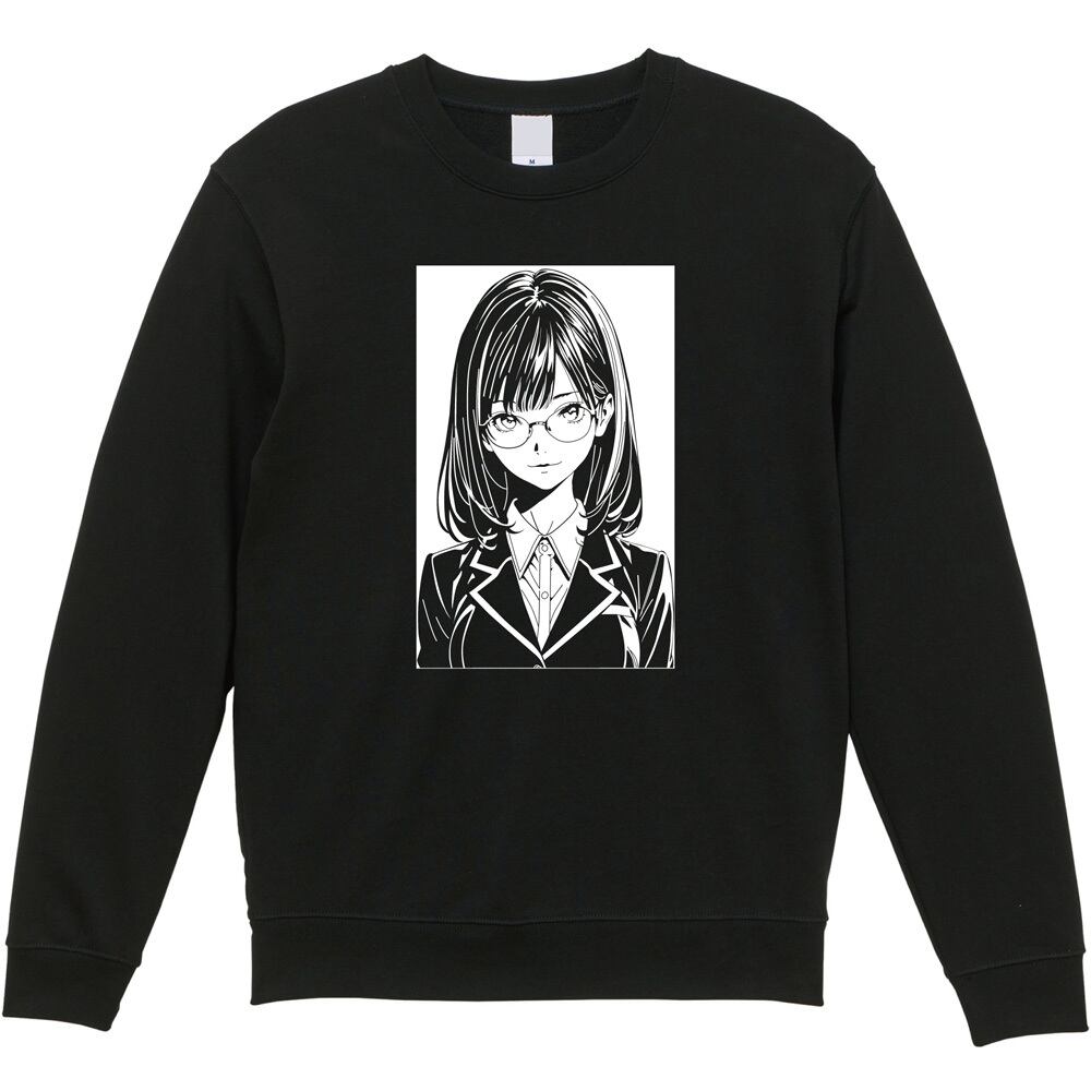 【眼鏡女子高生/全5色】笑顔 アーバン・ラインアート スウェット|シティガール エモい イラスト トレーナー