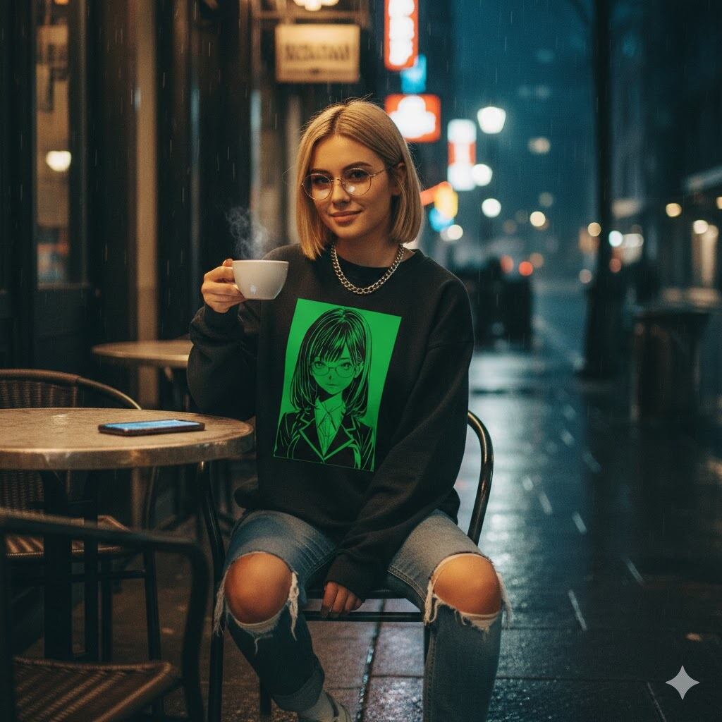 漆黒に浮かぶ放課後の微笑み。都会的なエモさを纏う極上スウェット