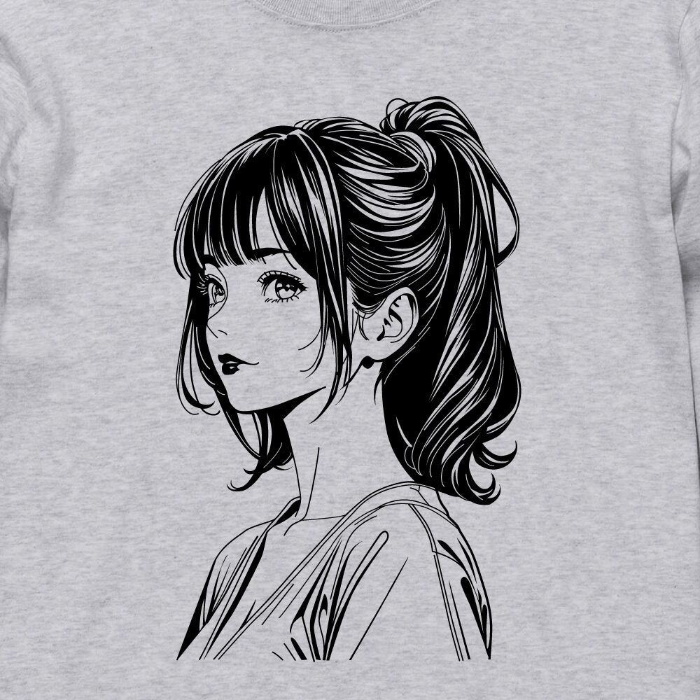 80年代シティポップの世界観を投影した、アンニュイな女性のプロファイル(横顔)を繊細な線画で表現しました。