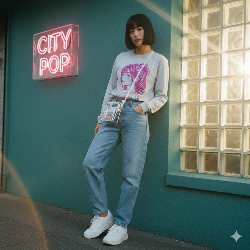 City Pop Nostalgia 長袖Tシャツ ロンT |【全5色】 シティポップ 80s レトロ エモい イラスト 線画 かわいい おしゃれ ユニセックス