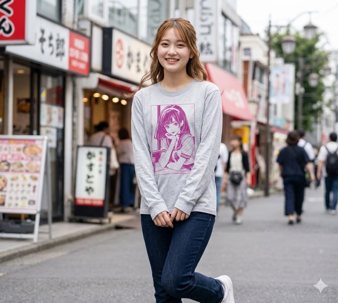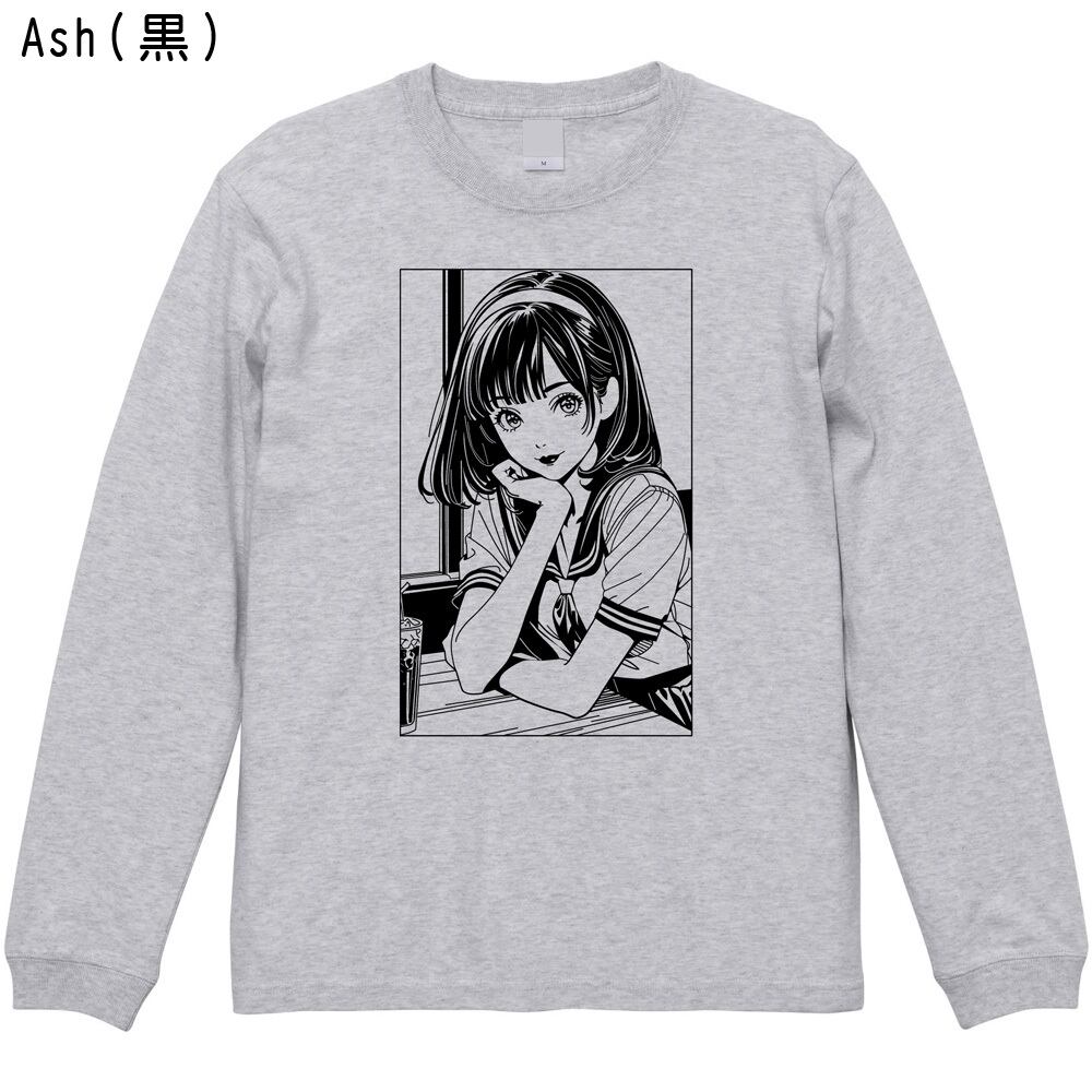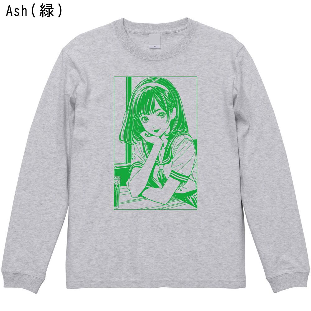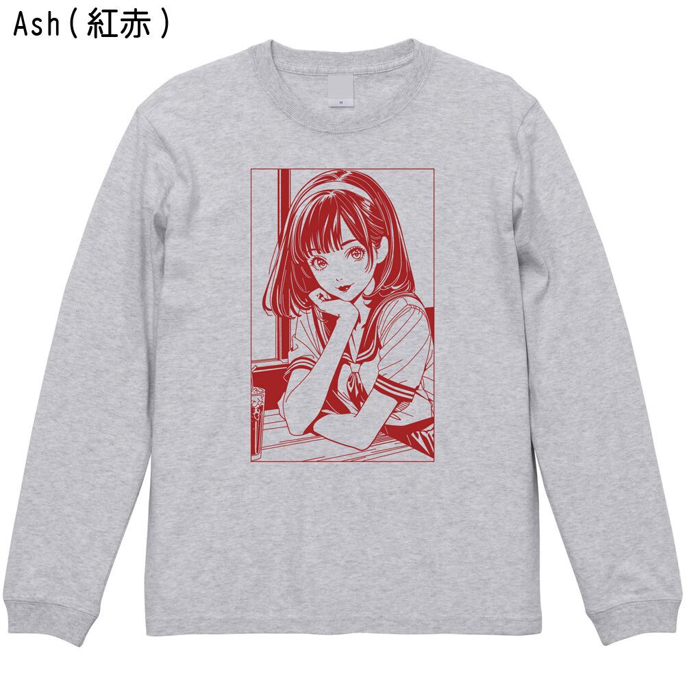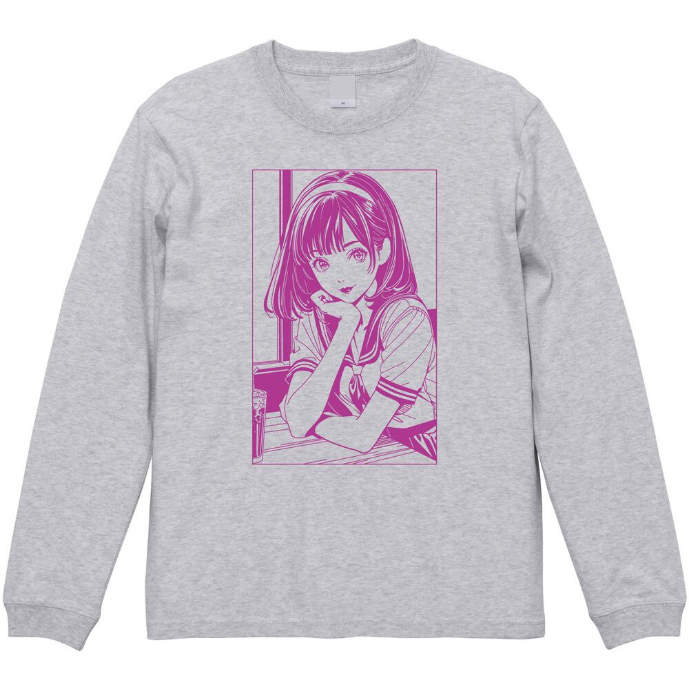 「エモい」放課後少女 ロンT | 80's シティーポップ 長袖Tシャツ レトロ アニメ風 イラスト 全5色