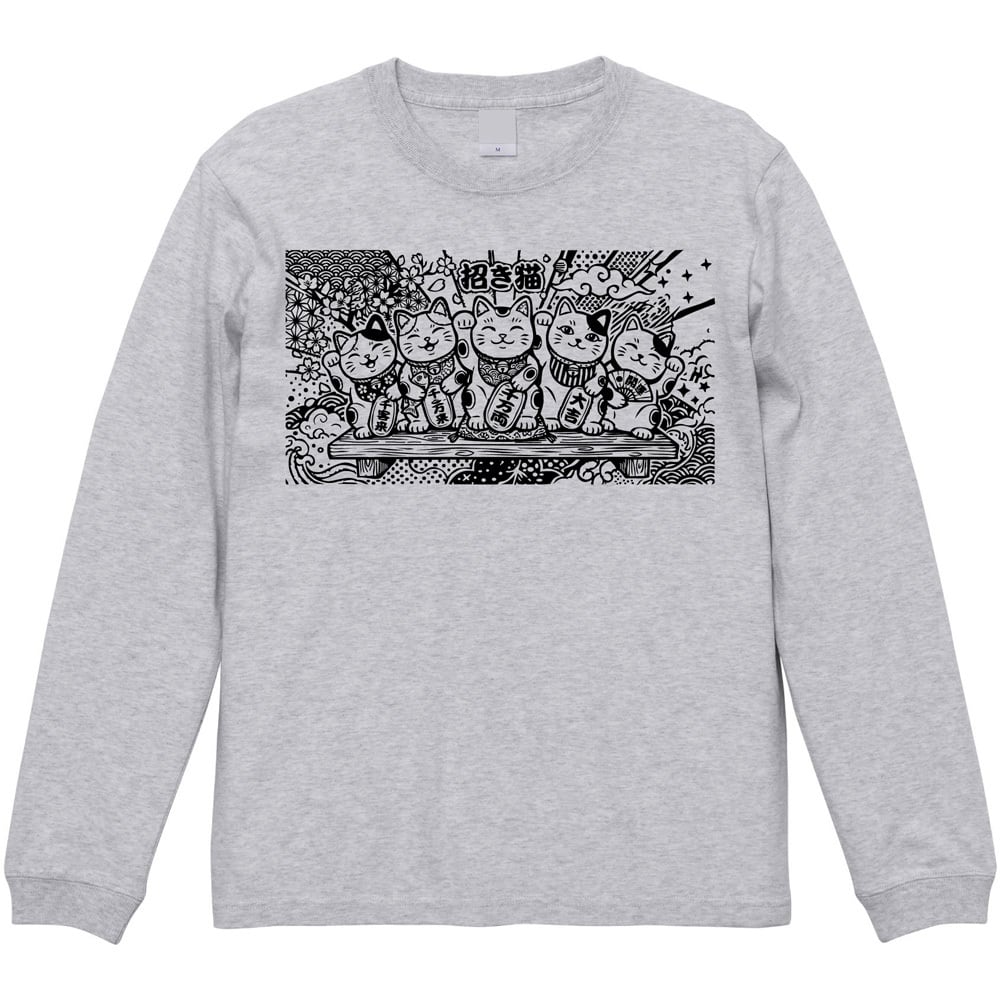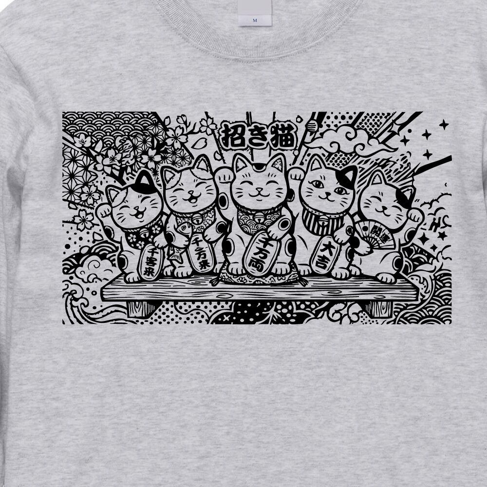 招き猫 長袖Tシャツ ロンT 和柄 浮世絵風 ストリート 縁起物 七福猫 開運 千客万来 商売繁盛