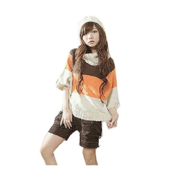 【在庫限り】ドルマン ボーダー タートルネック ニット トップス ハーフスリーブ 五分袖 体型カバー ゆったり ざっくり編み マルチボーダー