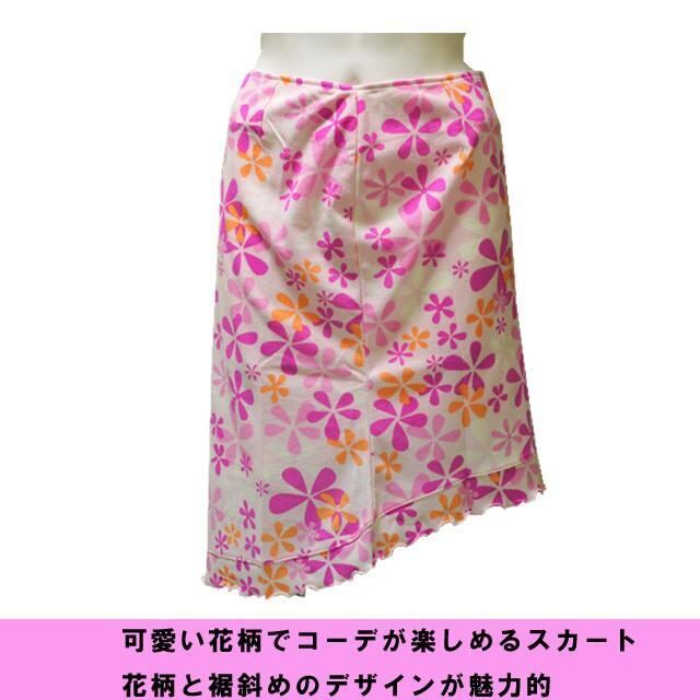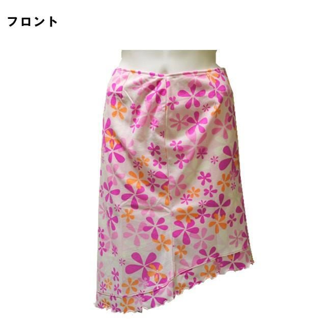 【在庫限り】花柄 アシンメトリー スカート ロング 膝丈 ピンク リゾート ビーチ ウェア ハワイアン 華やか 総柄