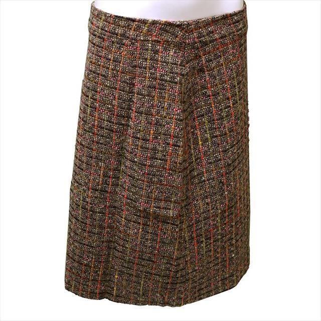 【在庫限り】ダマール Damart ウール混 ツイード スカート 膝丈 裏地付