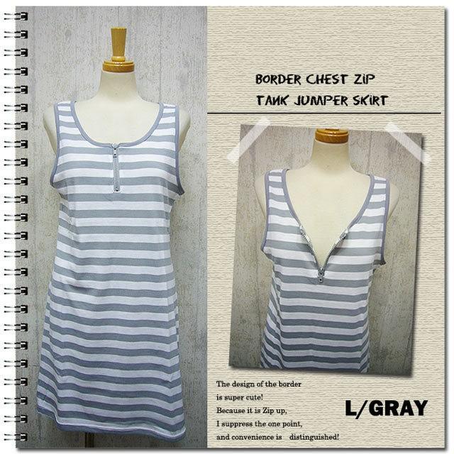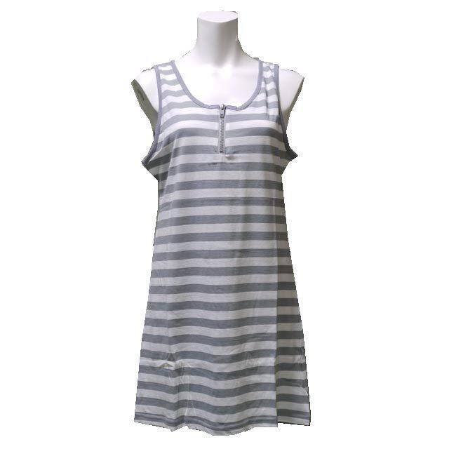 【在庫限り】ボーダー ジャンパースカート ジップアップ ワンピース チュニック ノースリーブ 膝丈 カジュアル 綿混 涼しい 夏 ルームウェア