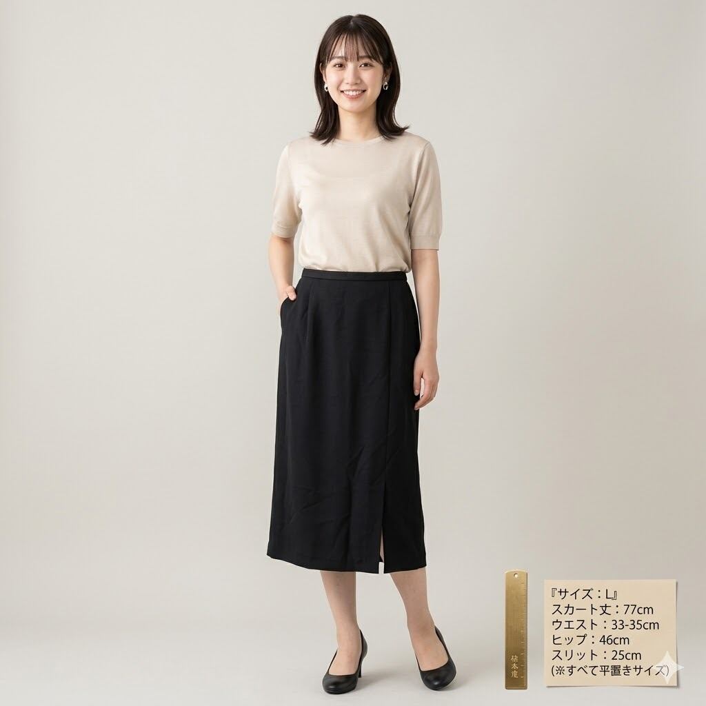 歩きやすさを考慮: 裾から25cmのスリットが入っており、タイトスカート特有の窮屈さを解消。足捌きが良く、階段の昇り降りもスムーズです。