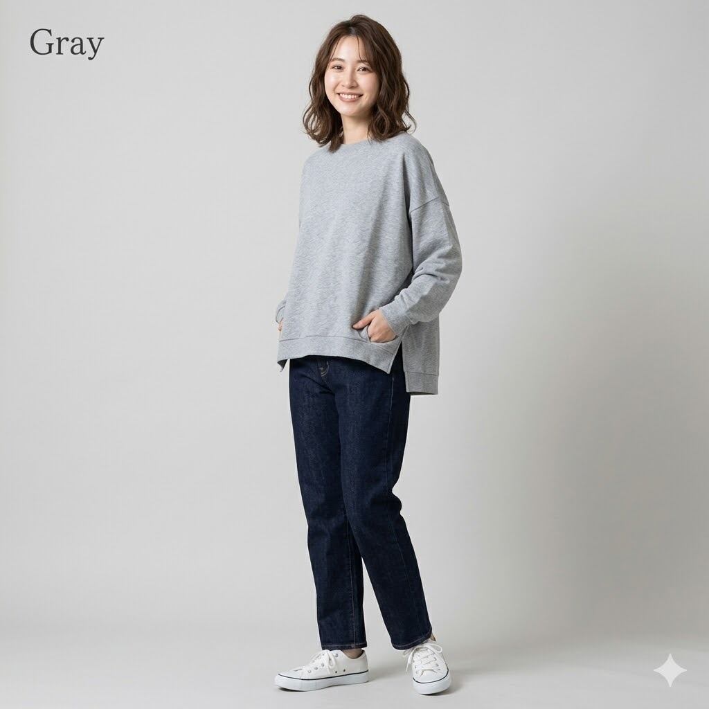 ベーシックなグレーカラーは、着回し力抜群。タイトスカートできれいめカジュアルに、デニムやワイドパンツでストリートカジュアルに、ボトムスを選ばないので幅広いコーディネートが楽しめます。