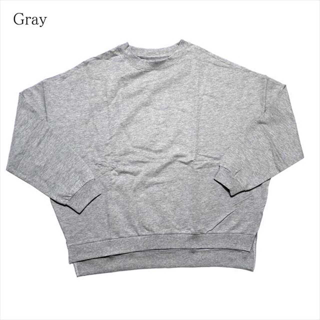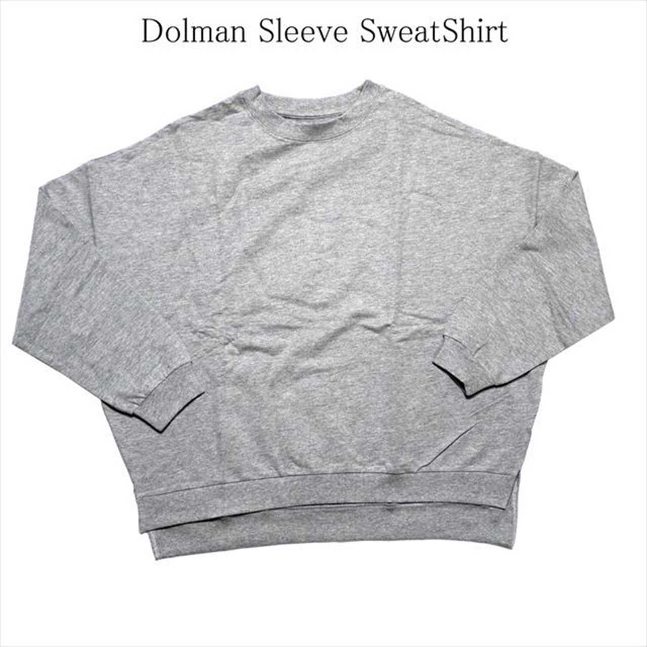 【在庫限り】大人カジュアル ドルマンスリーブ スウェット 【ビッグシルエット】 サイドスリット 前後差 プルオーバー オーバーサイズ 体型カバー 綿混 柔らか素材 フリーサイズ グレー