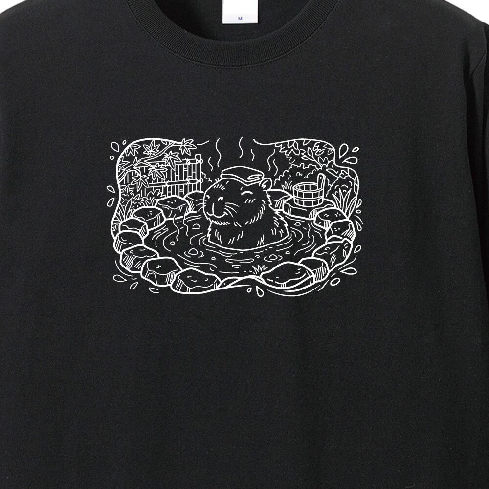 露天風呂でほっこり温まるカピバラを描いた、オリジナルイラストの長袖Tシャツ(ロンT)です。