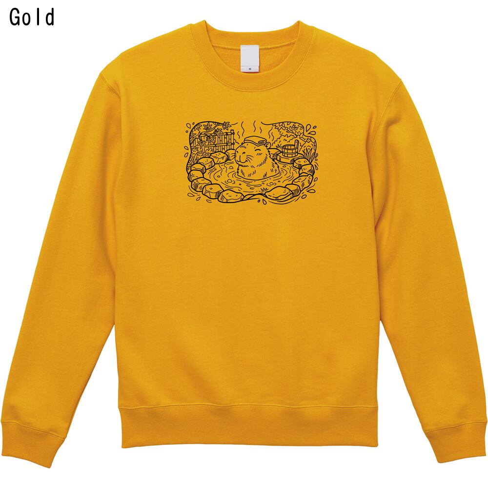 【全4色】カピバラ 温泉 トレーナー スウェット かわいい イラスト おもしろ ゆるキャラ 動物 露天風呂 癒やし オリジナル プリント