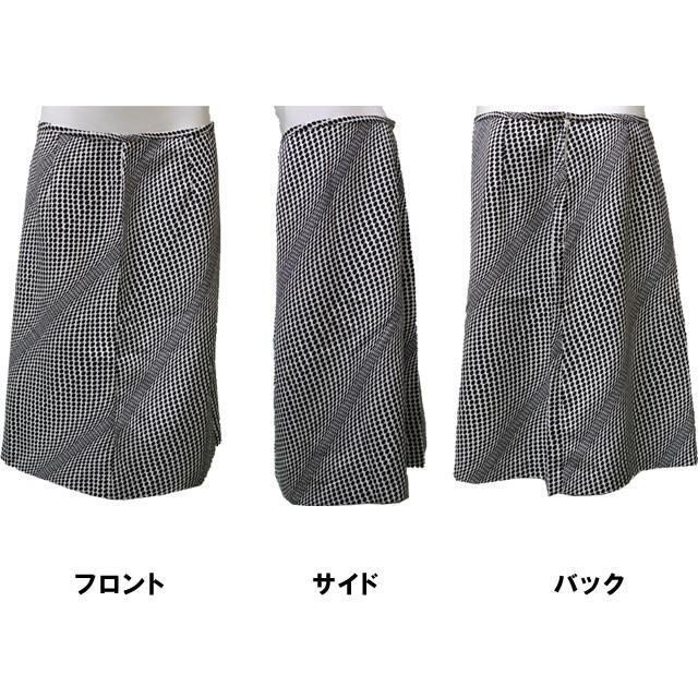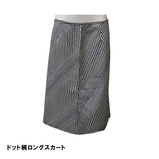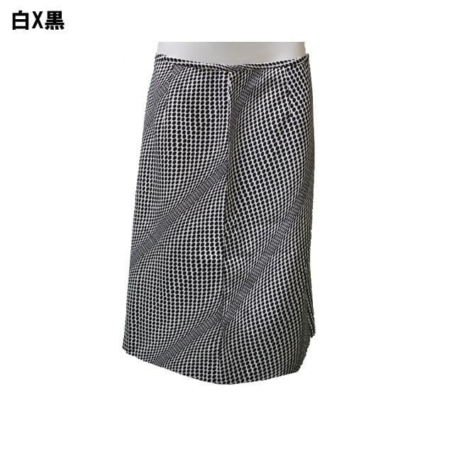 【在庫限り】ドット柄スカート 白X黒 水玉 膝丈 裏地付 美シルエット