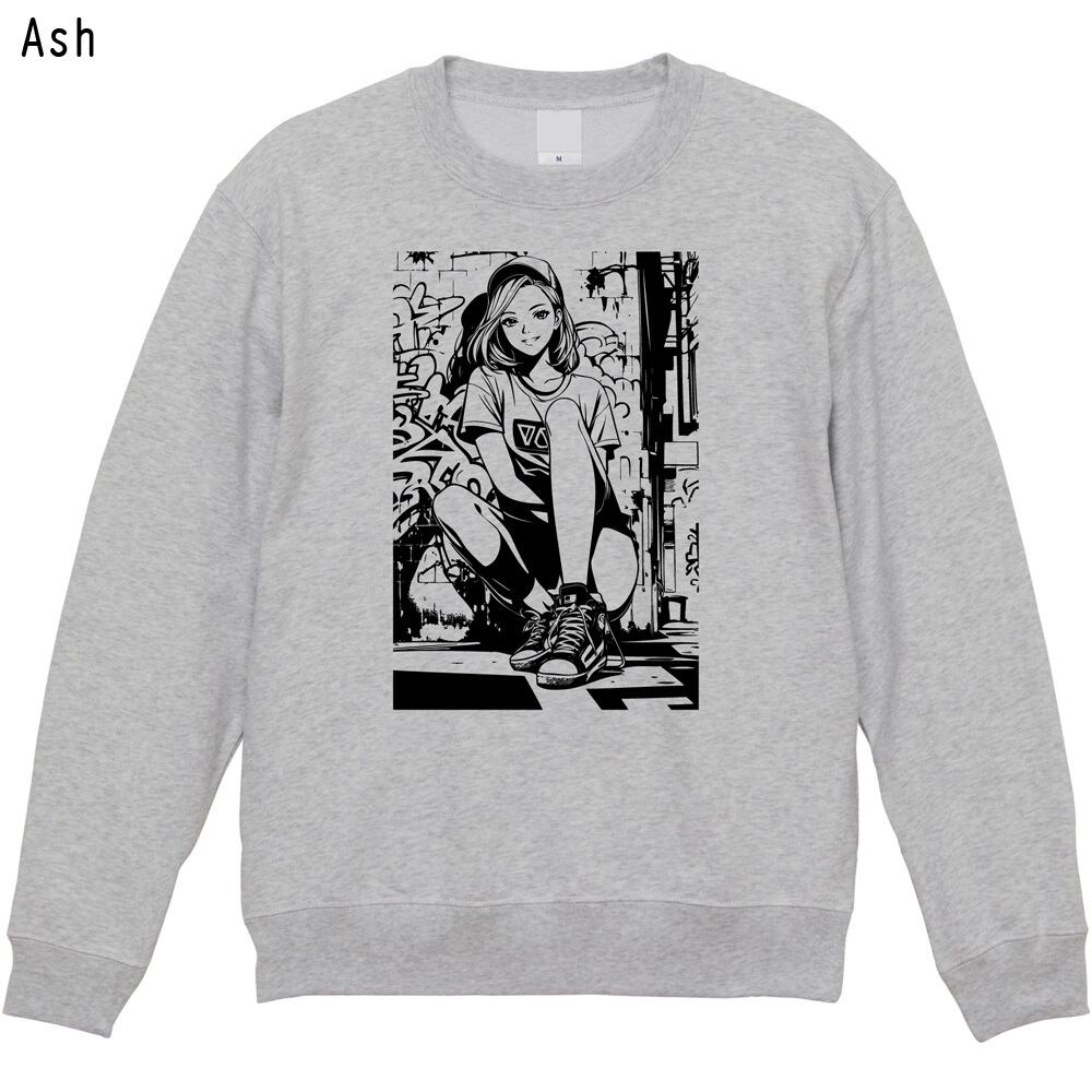 【全3色】 ストリート系 アニメ イラスト プリント スウェット トレーナー グラフィティ ポップガール City Canvas
