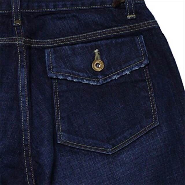 バックスタイルには、ボタン付きのフラップポケットを配置。小尻効果とともに、ワーク・ミリタリーテイスト漂うアクセントを加えています。
