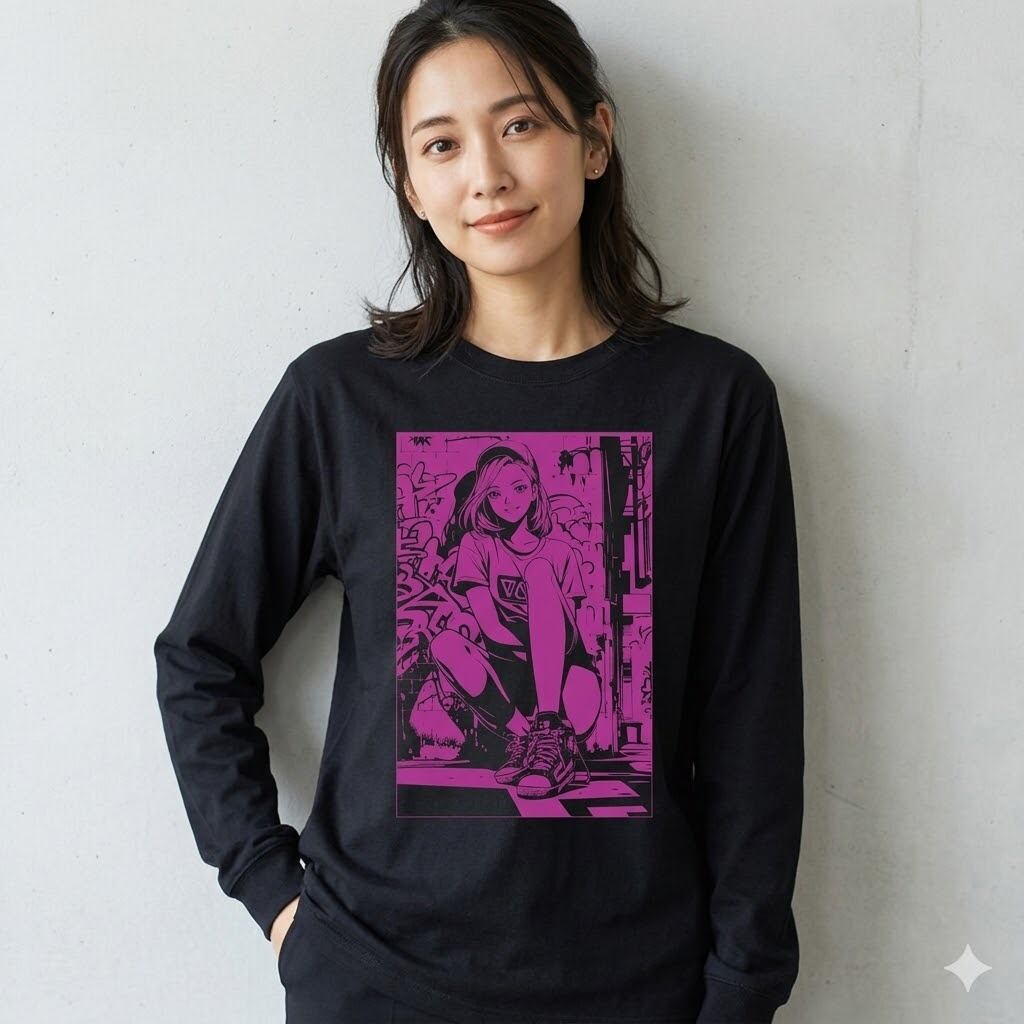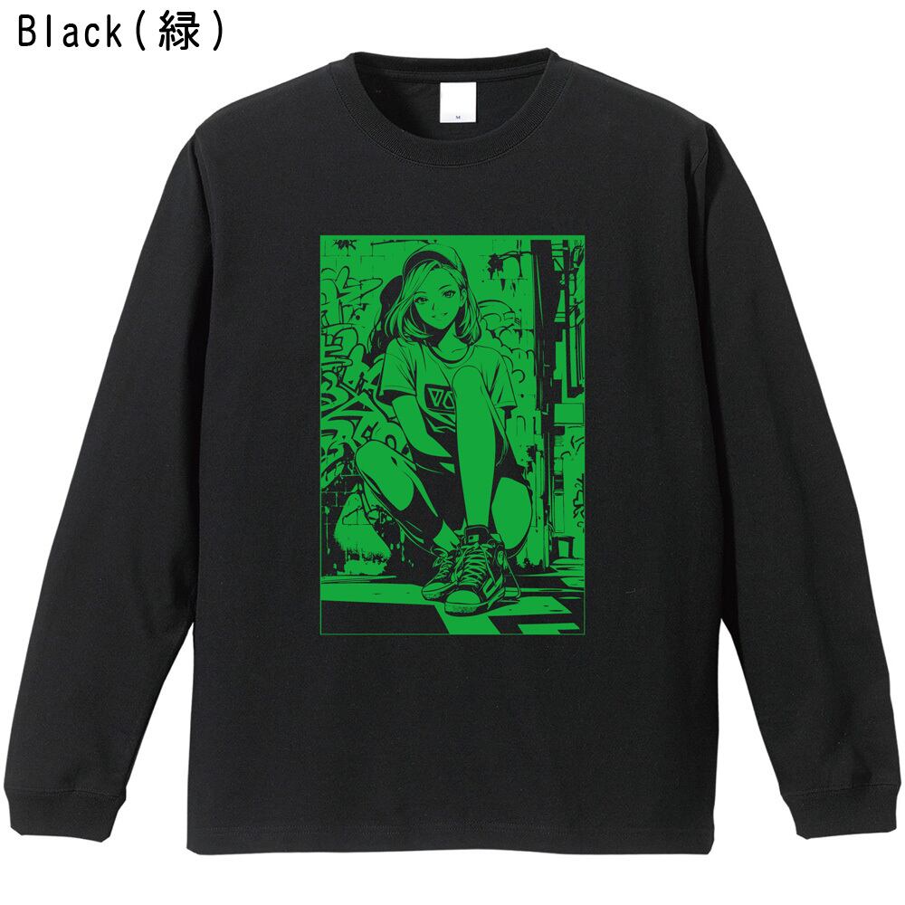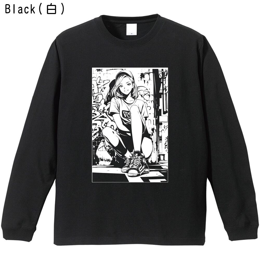 [全5色] 黒 ロンT ストリート系 アニメ イラスト プリント 長袖Tシャツ グラフィティ ポップガール ユニセックス City Canvas