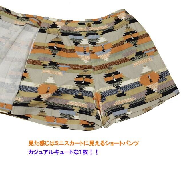 【在庫限り】スカパン 総柄 ネイティブ オルテガ ショートパンツ ミニスカート風 カジュアル