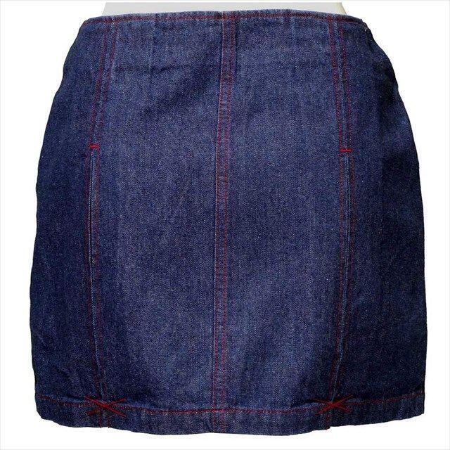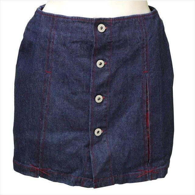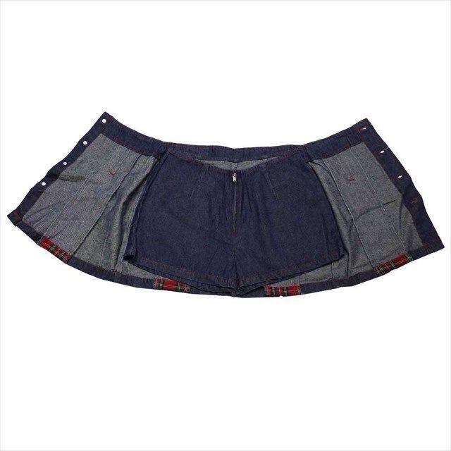【在庫限り】スカパン デニム ミニ スカート風 ショートパンツ チェック 前ボタン 赤ステッチ