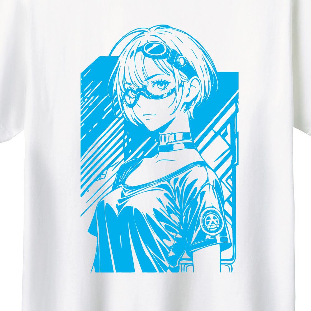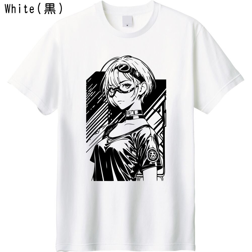 本商品はサイバーパンクな世界観を投影した眼鏡女子のラインアートが目を引くオリジナルプリントTシャツです。