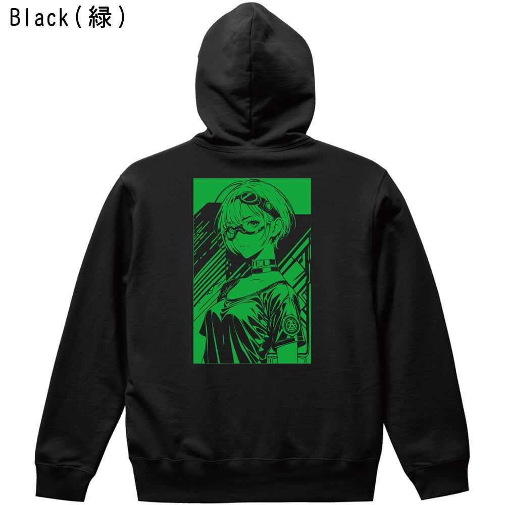 背中で光る電脳都市。全5色の眼鏡女子ブラックフーディ。