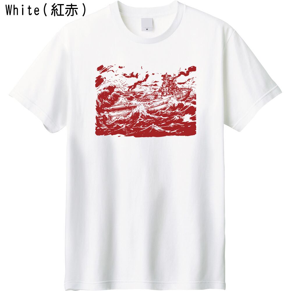 【全5色/劇画風】戦艦大和 プリントTシャツ 荒波 墨絵 イラスト ヴィンテージ風 ミリタリー Tシャツ