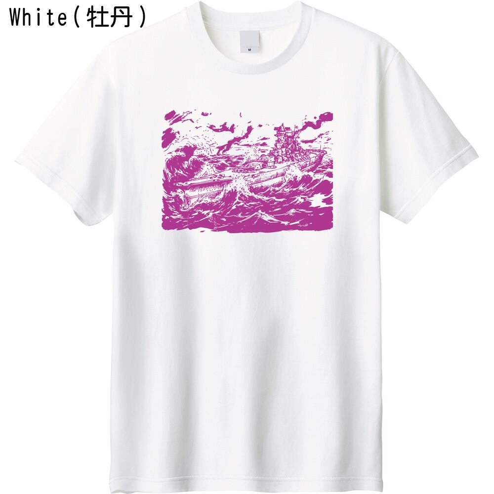 【全5色/XXL/劇画風】戦艦大和 プリントTシャツ 荒波 墨絵 イラスト ヴィンテージ風 ミリタリー Tシャツ