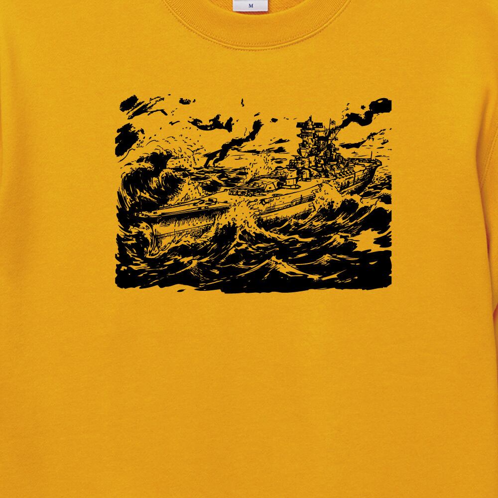 荒波を切り裂く大和の勇姿。劇画墨絵が映える重厚なスウェット。