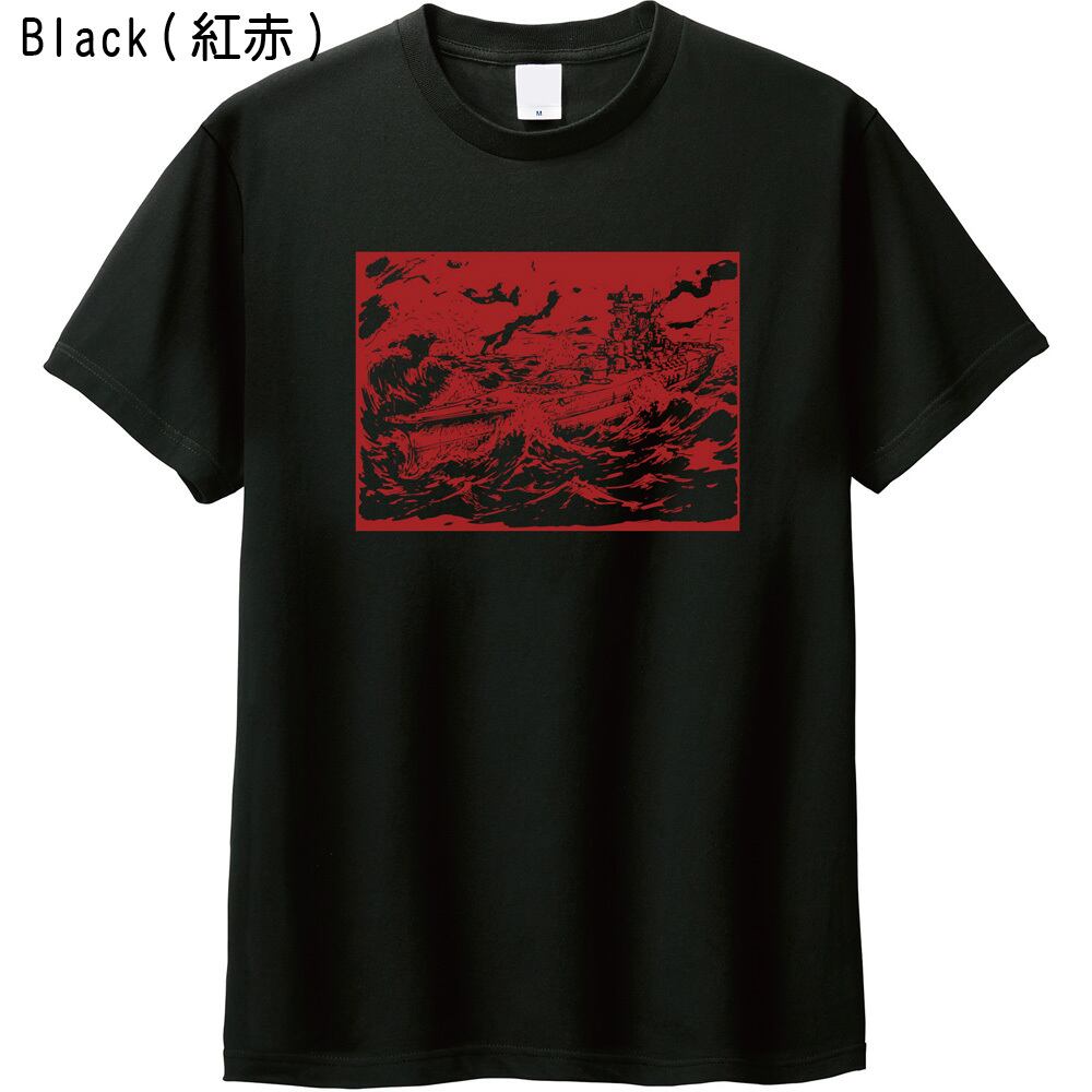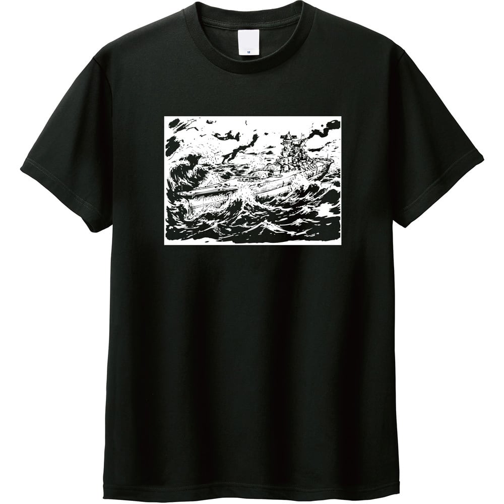 【全5色/劇画風/XXL】戦艦大和 プリントTシャツ 荒波 墨絵 イラスト ヴィンテージ風 ミリタリー Tシャツ 黒 ブラック