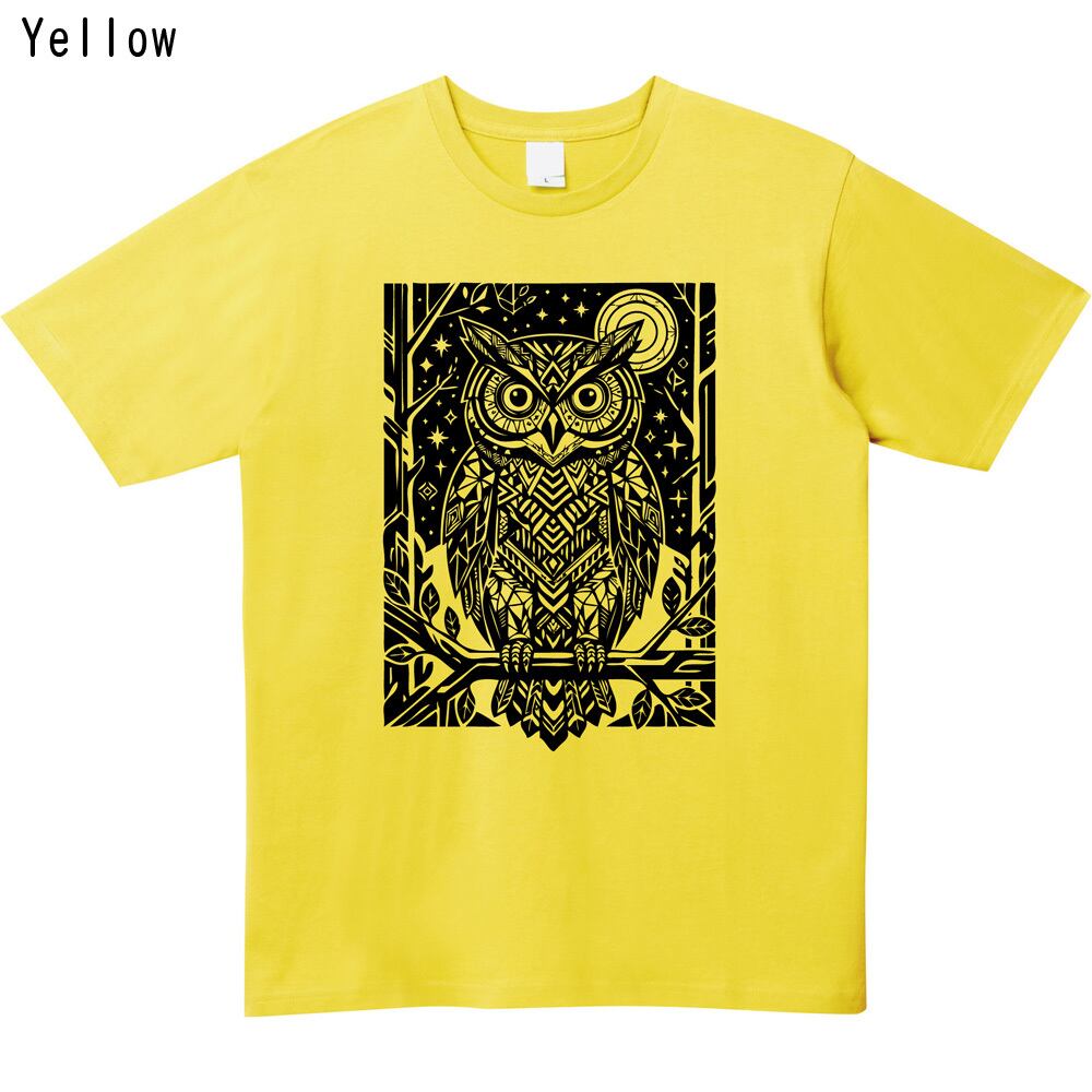 [全4色] 幸運を呼ぶフクロウTシャツ 幾何学模様 アートデザイン|ユニセックス・北欧風ジオメトリック・ギフト対応