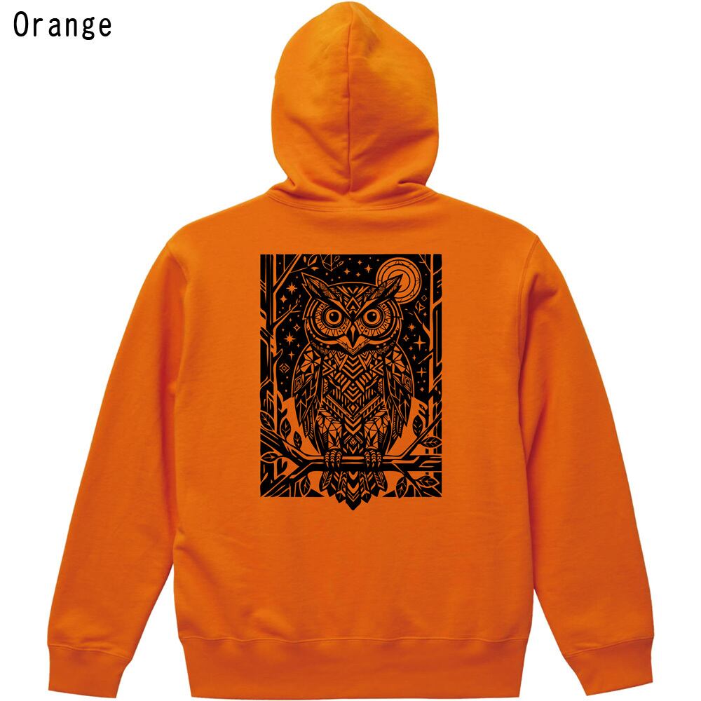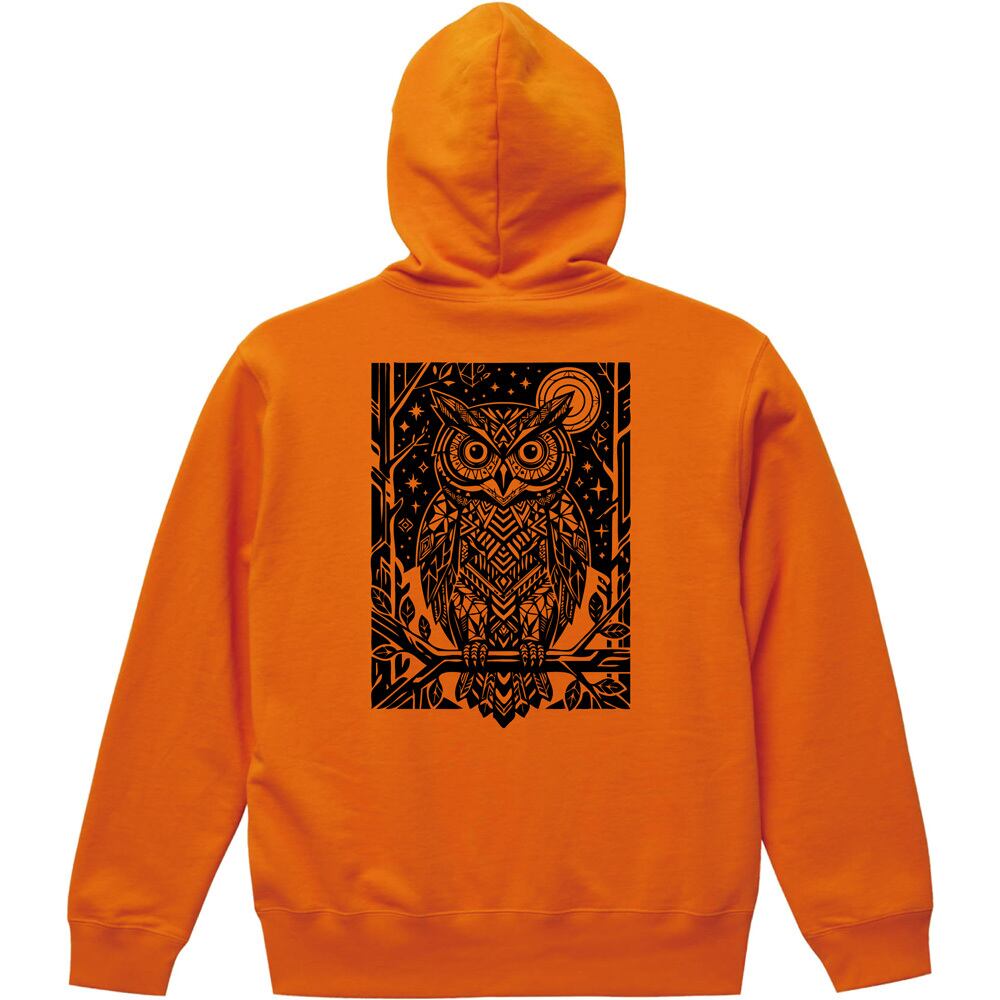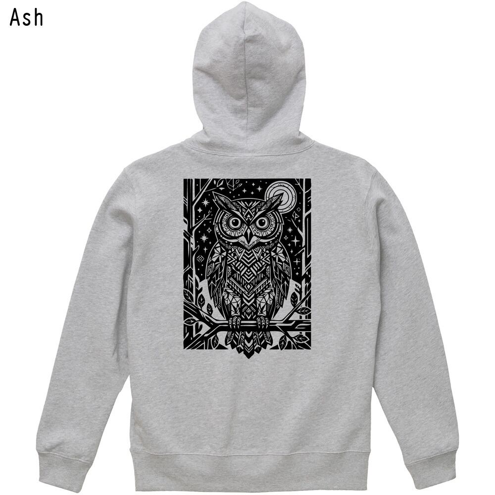 【全3色】幸運を呼ぶフクロウ バックプリント パーカー 幾何学模様 アート|プルオーバー フーディ ユニセックス 北欧風 ジオメトリック ギフト