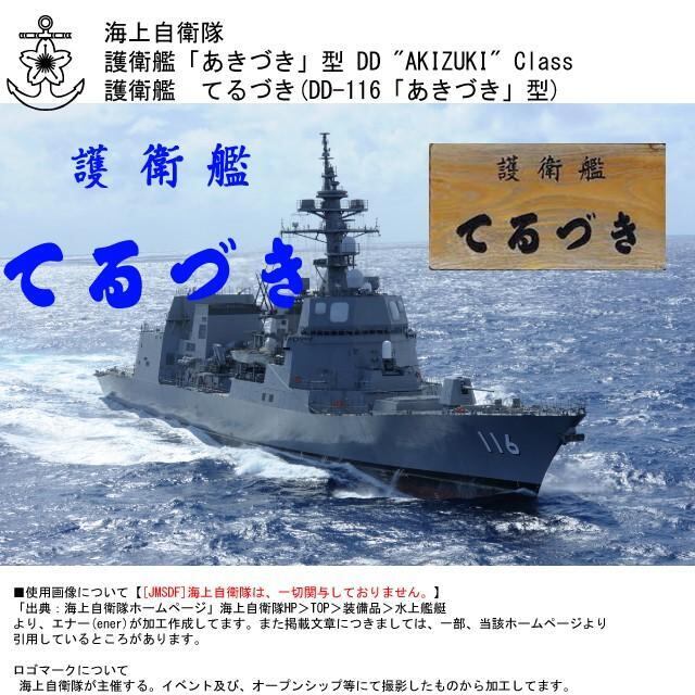 艦名「てるづき」は、「照りかがやく月」に由来し、旧海軍の秋月型駆逐艦2番艦「照月」や海上自衛隊の護衛艦隊初代旗艦を務めた護衛艦「てるづき」など伝統ある名称であり知名度が高いことから選定されたんだって。