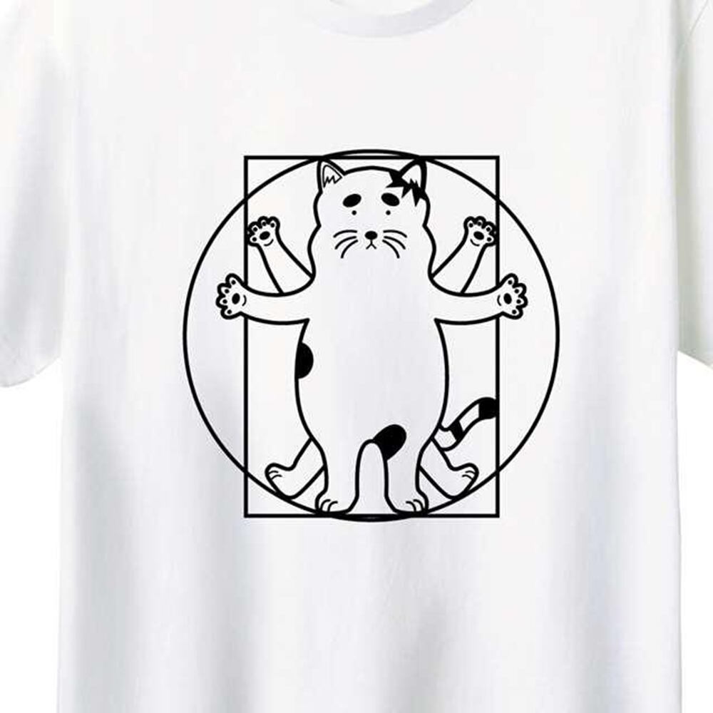 ウィトルウィウスのポーズをとる猫が描かれたこのアイテムは、個性的でお洒落な一着として注目を集めています。