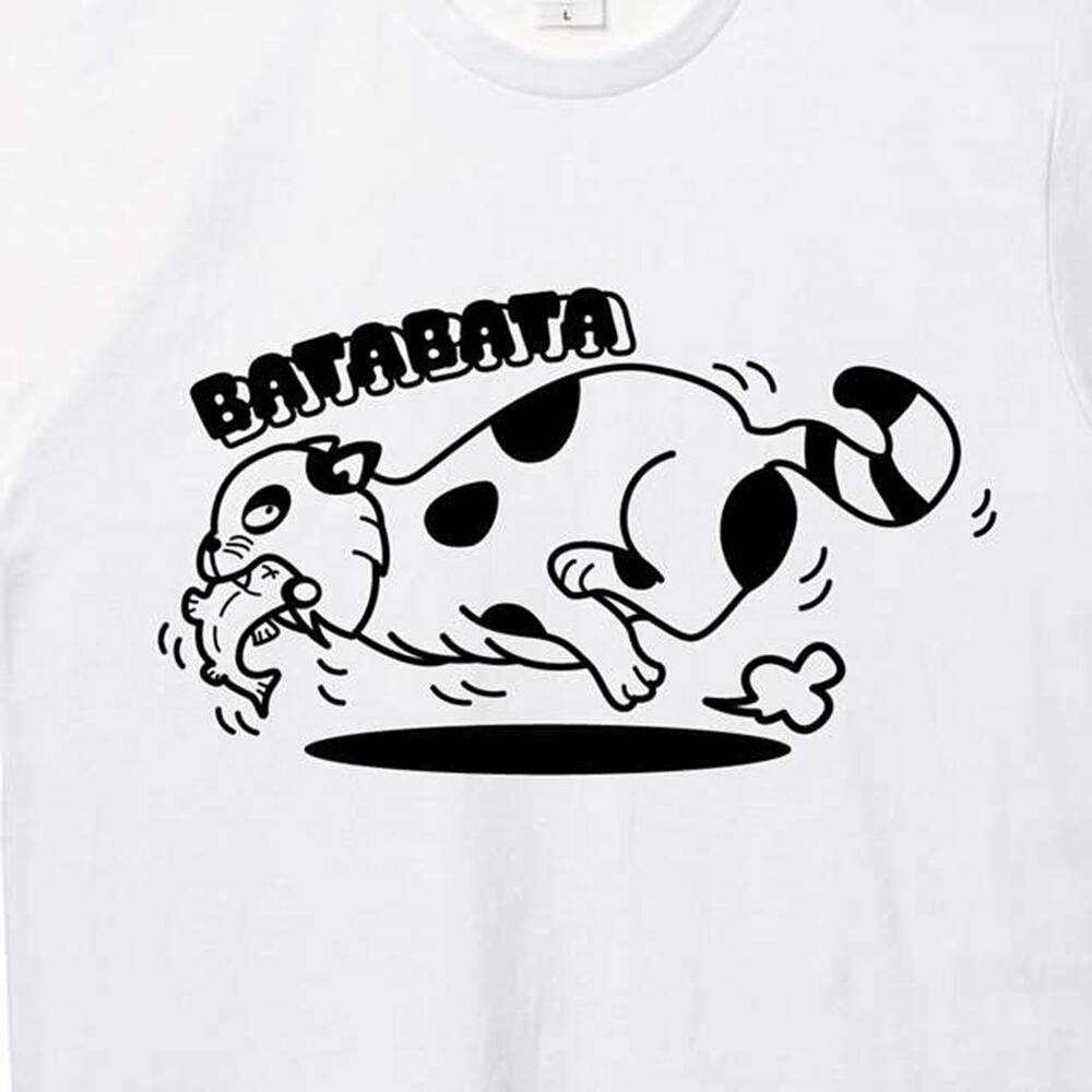 ロゴに描かれた猫が魚をくわえて逃げるユニークなデザインは、シンプルながらも存在感抜群の一枚。